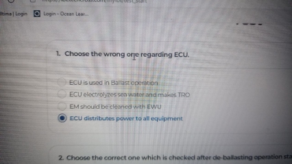 Description: Techcross IBT (BWMS CONVENTION) test on the Ballast Water Management System from Koreans. The test has 20 questions, 80% passing rate. The test is quite difficult and there is no feedback upon completion of the test