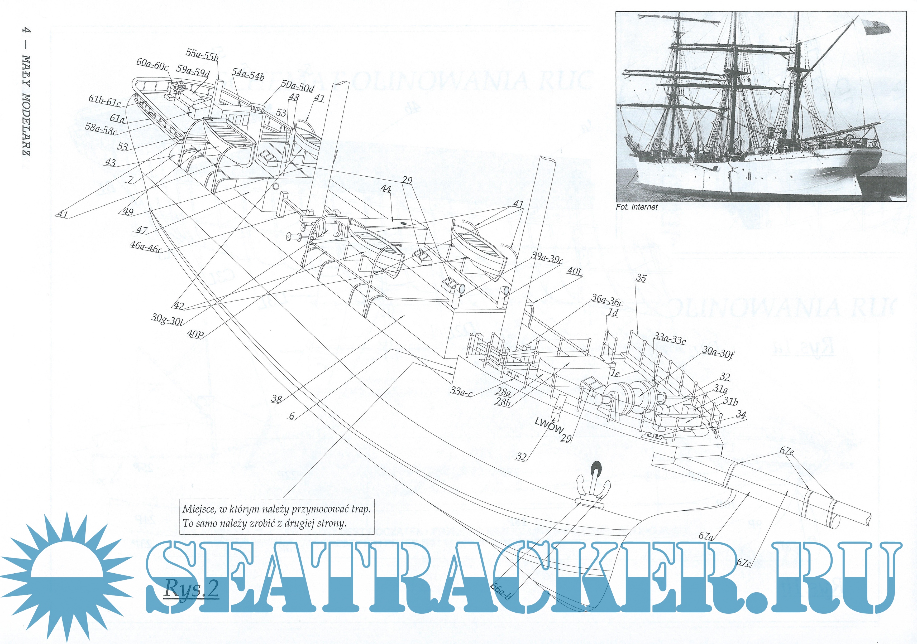 43 листа цветных выкроек и инструкций для изготовления бумажной модели польского парусника STS ''Lwów'' в масштабе 1:100Скриншоты