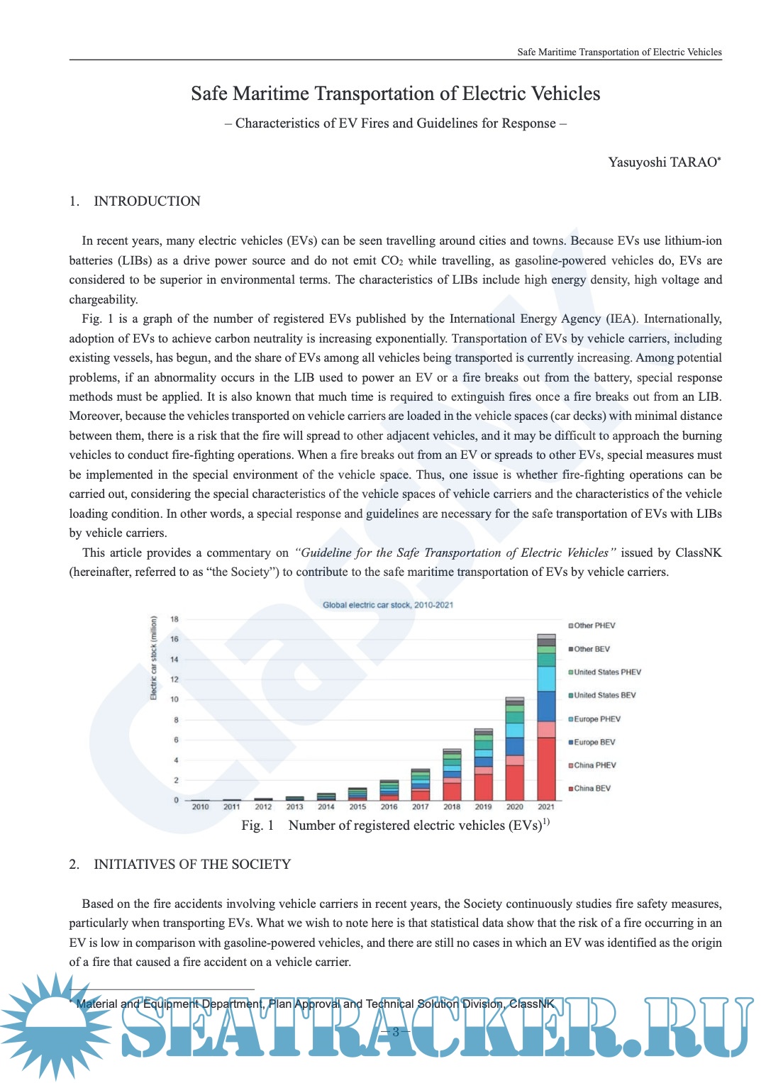 Year: 2024 Language: English Author: ClassNK Genre: Periodical (magazine) Publisher: ClassNK Edition: 1 Format: PDF Quality: eBook Pages count: 82 Description: Iniciative for Vehicles Carrier Fires which introduces the guidelines for the safe transportation of electric vehicles