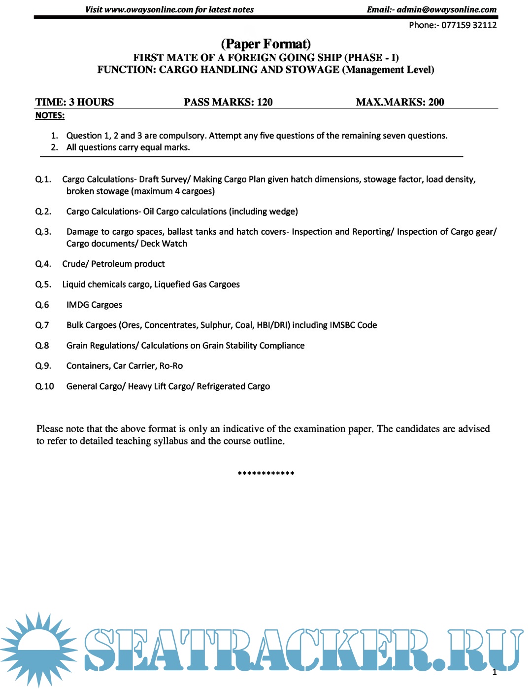 Description: Question Paper Set for Phase I (Chief Mate F.G.) Mercantile Marine Department (MMD), India Examination