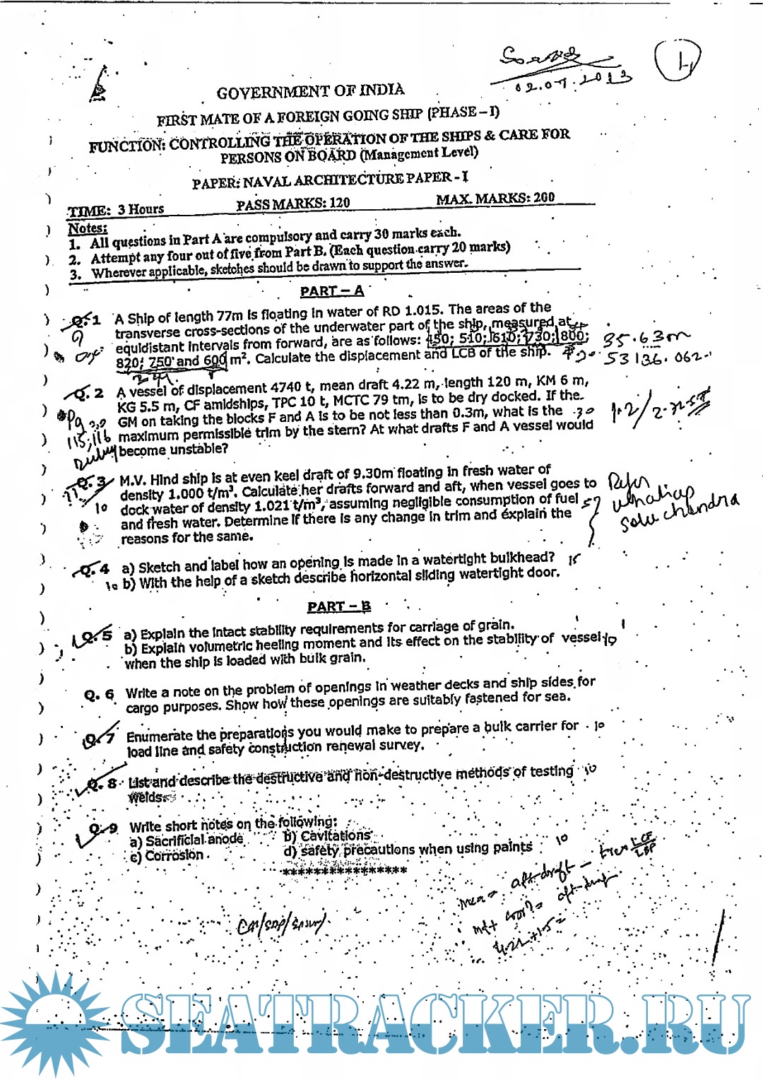 Question Paper Set (July 2024) for Phase I (Chief Mate F.G.) Mercantile Marine Department (MMD), India Examinations
