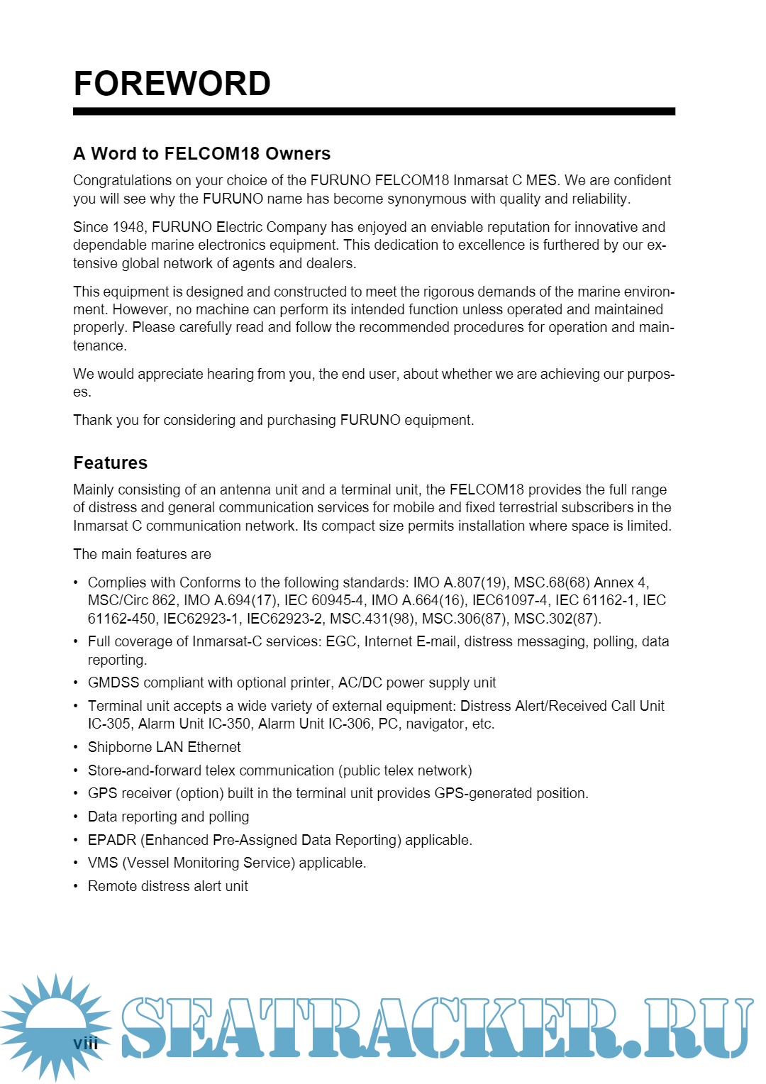 FURUNO FELCOM 18 INMARSAT C Operators Manual