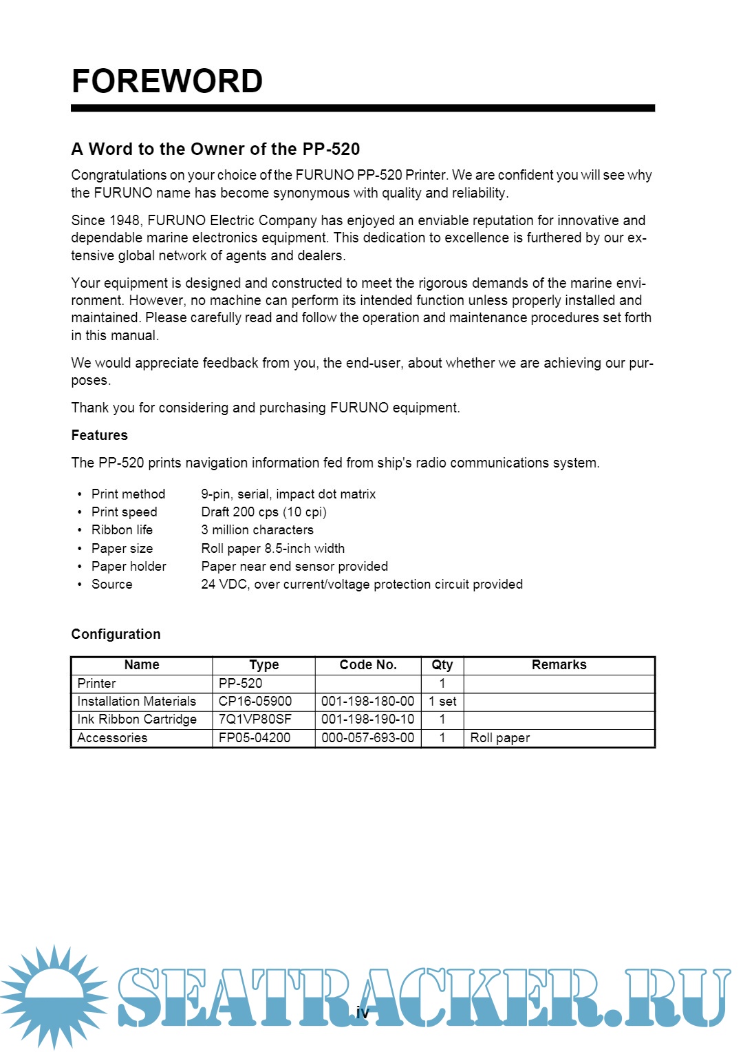 Description: This Operator's manual describes precautions, operations and troubleshooting of FURUNO PP520 PRINTER