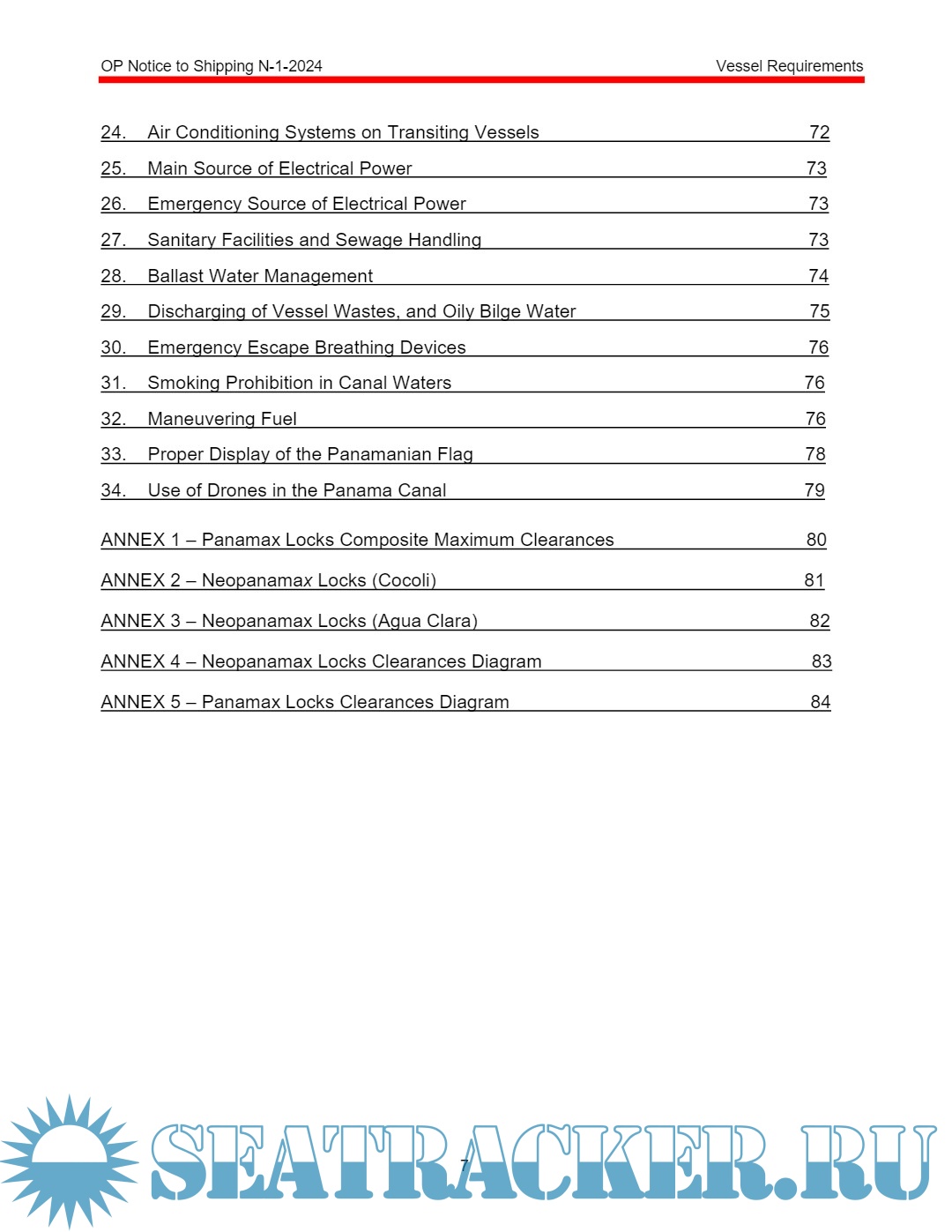 Panama Canal Vessel requirements OP notice to shipping 1 of 2024