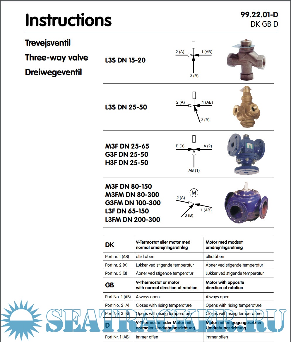 Clorius 3-way temperature control valve Type M3F - Clorius Controls A/S [2005, PDF]