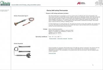 Clorius self-acting thermostats function directly and are available with sensors for air or liquids. They are also available as safety thermostats.