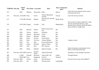 Welcome to this list of sailors who sailed around the world singlehanded. Please check the about page for more info about sources and methods. In the same page, you will find data description (metadata).