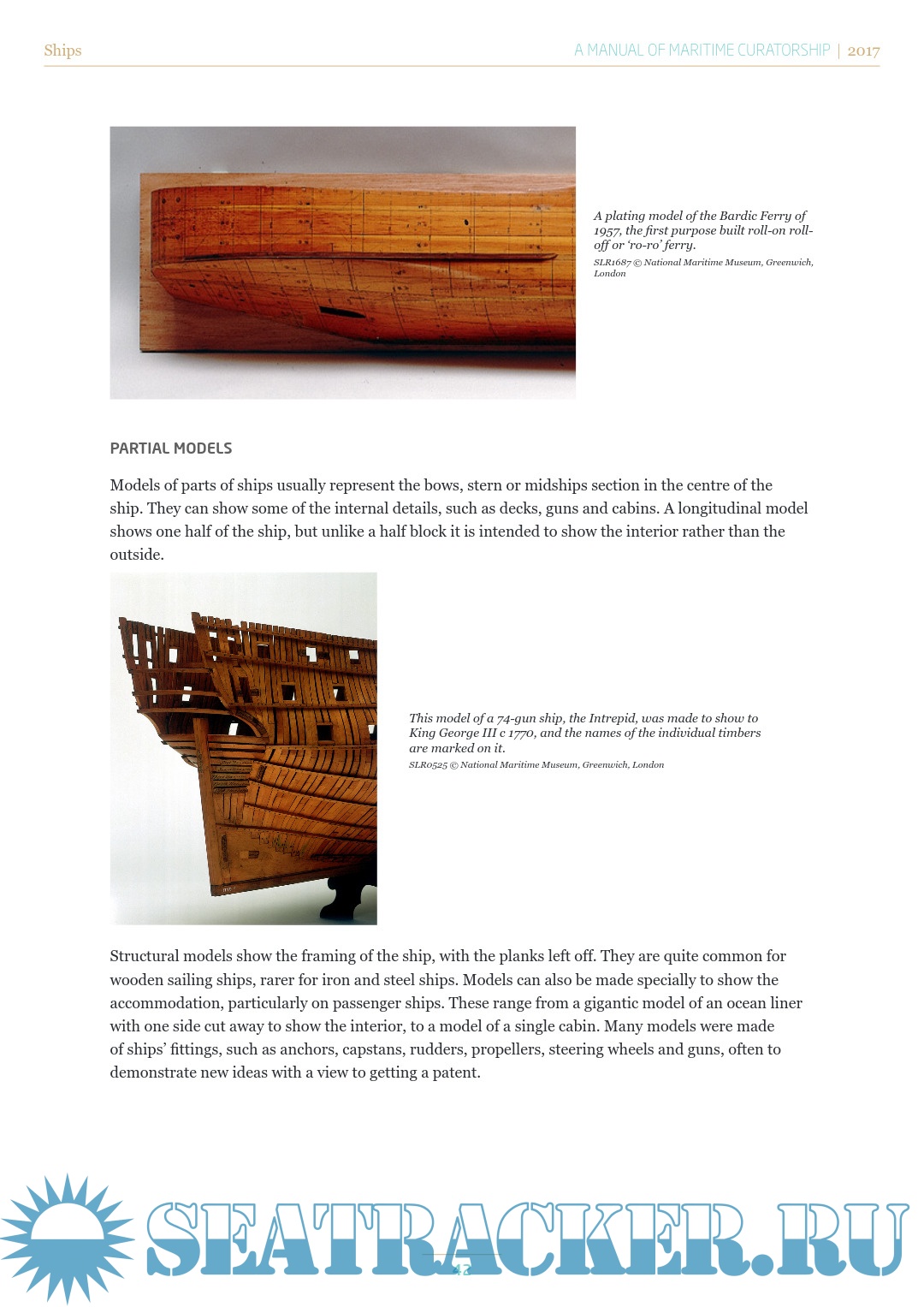 Year: 2017 Language: English Author: National Maritime Museum, Genre: Historical Publisher: National Maritime Museum, Format: PDF Quality: eBook Pages count: 65 Description: Models are perhaps the best way of representing the ship, although care needs to be taken with interpretation – the old-fashioned image of a maritime museum is a room stuffed with ship models with very little effort to interpret them. It is better if they can be arranged to tell the story of the development of ships in general or of a particular type, or illustrate the uses and art of models as in the current gallery at Chatham Historic Dockyard, or alternatively individual models can form part of a wider display