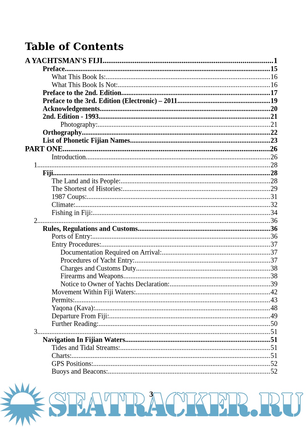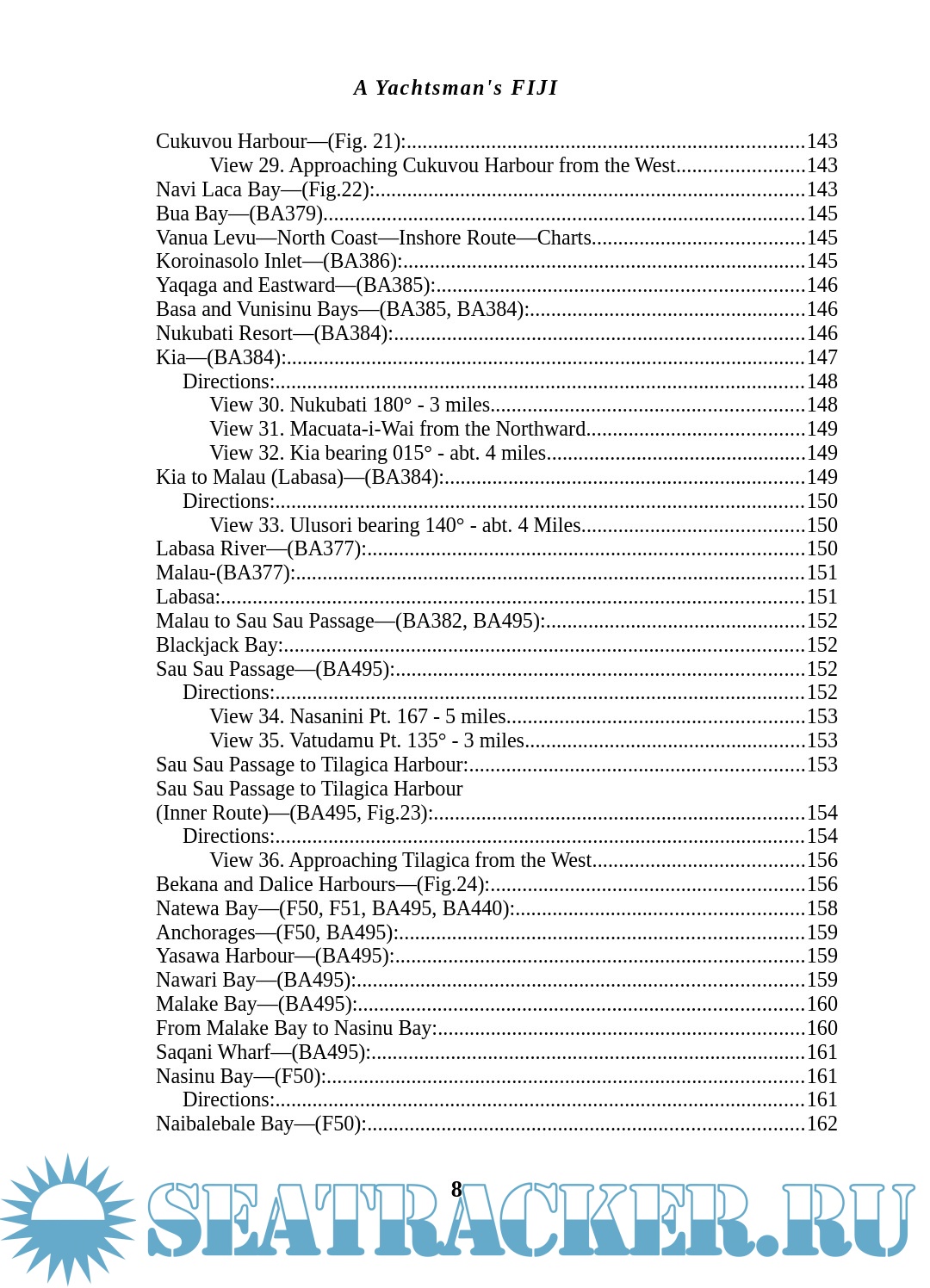 Year: 1987 Language: English Author: Calder M. Genre: Guide Publisher: The Cruising Classroom ISBN: 0 646 14682 3 Format: PDF Quality: eBook Pages count: 265 Description: In July of 1984, I arrived in Fiji from Vanuatu in my yacht 'Eureka', and after clearing customs at Lautoka, set off to cruise in the Yasawas. Charts were non-existent, but I was able to obtain some second-hand copies of 'Pickmere's' from a fellow yachtie who was moving on to Vanuatu. Until that time I had no knowledge of their existence and had already found that, except for the Pacific Islands Pilot Vol.II, published by The Hydrographer of the Navy, there was no information of any sort on the waters of Fiji, particularly those areas of interest to a yachtsman.
