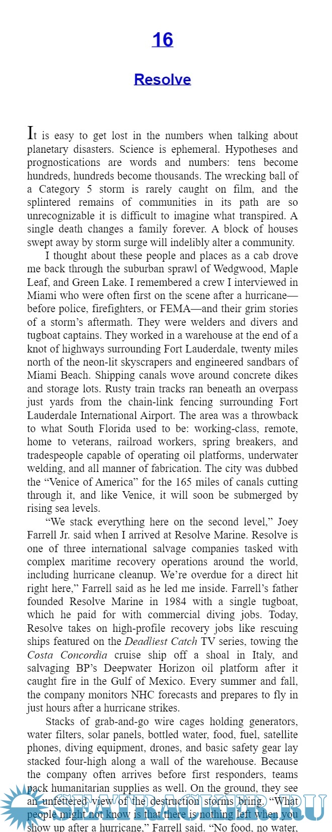 Throughout Category Five, Fox shadows these explorers, scientists, oceanographers, and weather forecasters in an attempt to understand, forestall, and possibly harness the awesome power of our oceans.