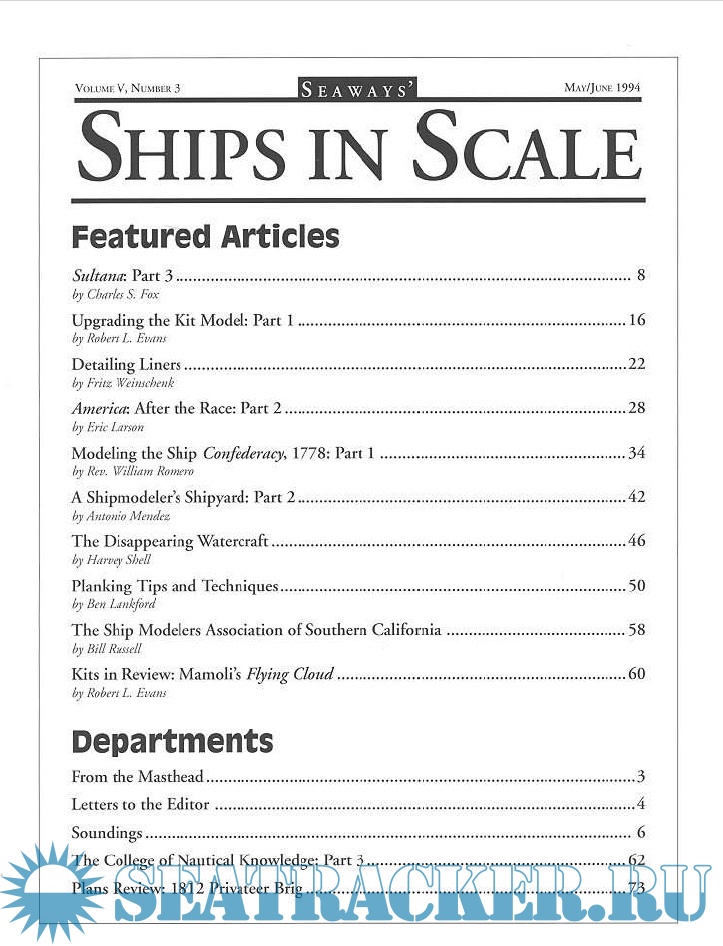 Year: 1994 Language: English Author: Scottie Dayton (Editor) Genre: Periodical publication Edition: 1994-3 Format: PDF Quality: eBook Pages count: 76 Description: Seaway is the home port for Seaways Ships in Scale magazine, the leading workshop and research magazine for the ship modeler. In the magazine we explore all levels of modeling experience, all types of ships, all kinds of models, all historical eras and all construction materials