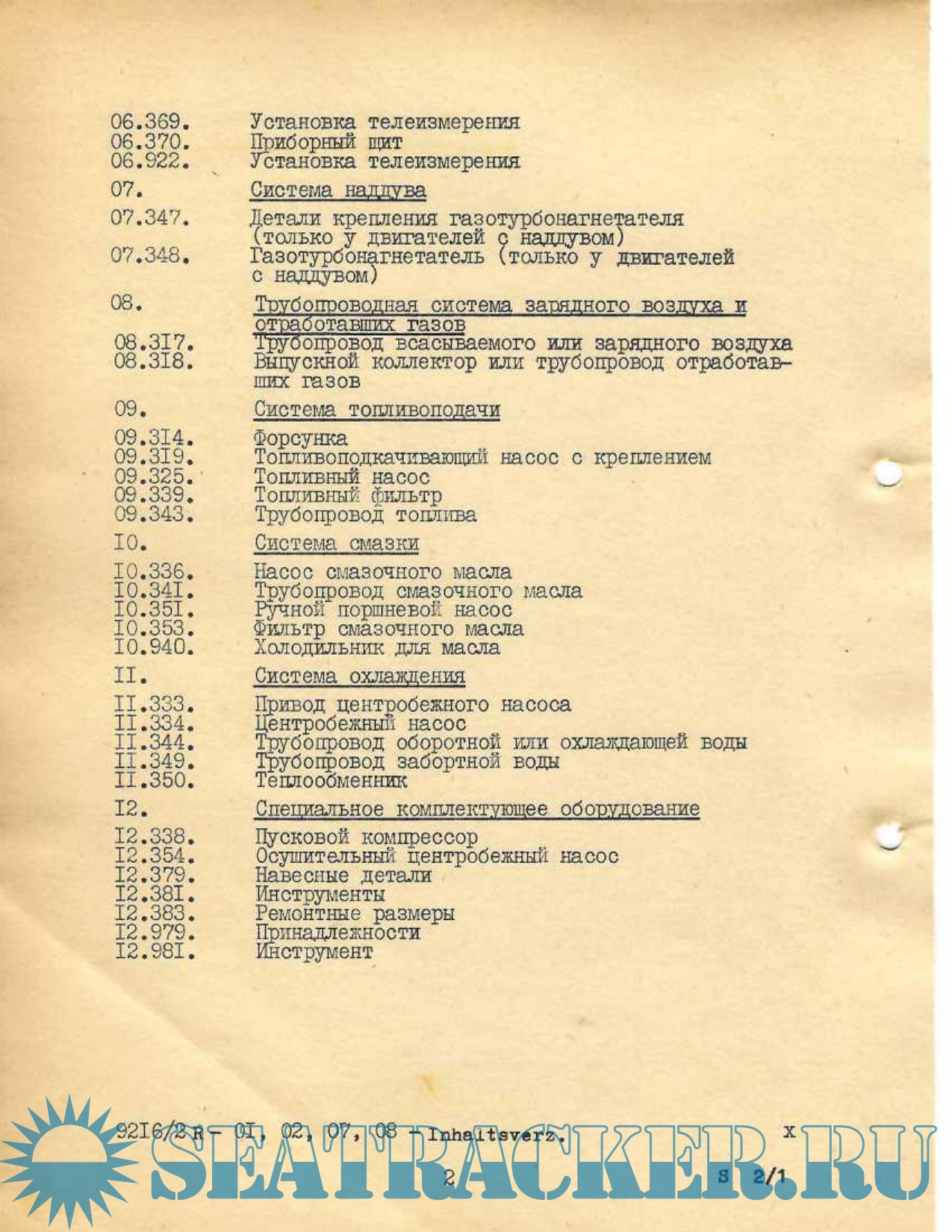 Список деталей для судового дизельного двигателя 6NVD 48-2 / 6NVD 48 A-2 / 6NVDS 48-2 / 6NVDS 48 A-2 том-2