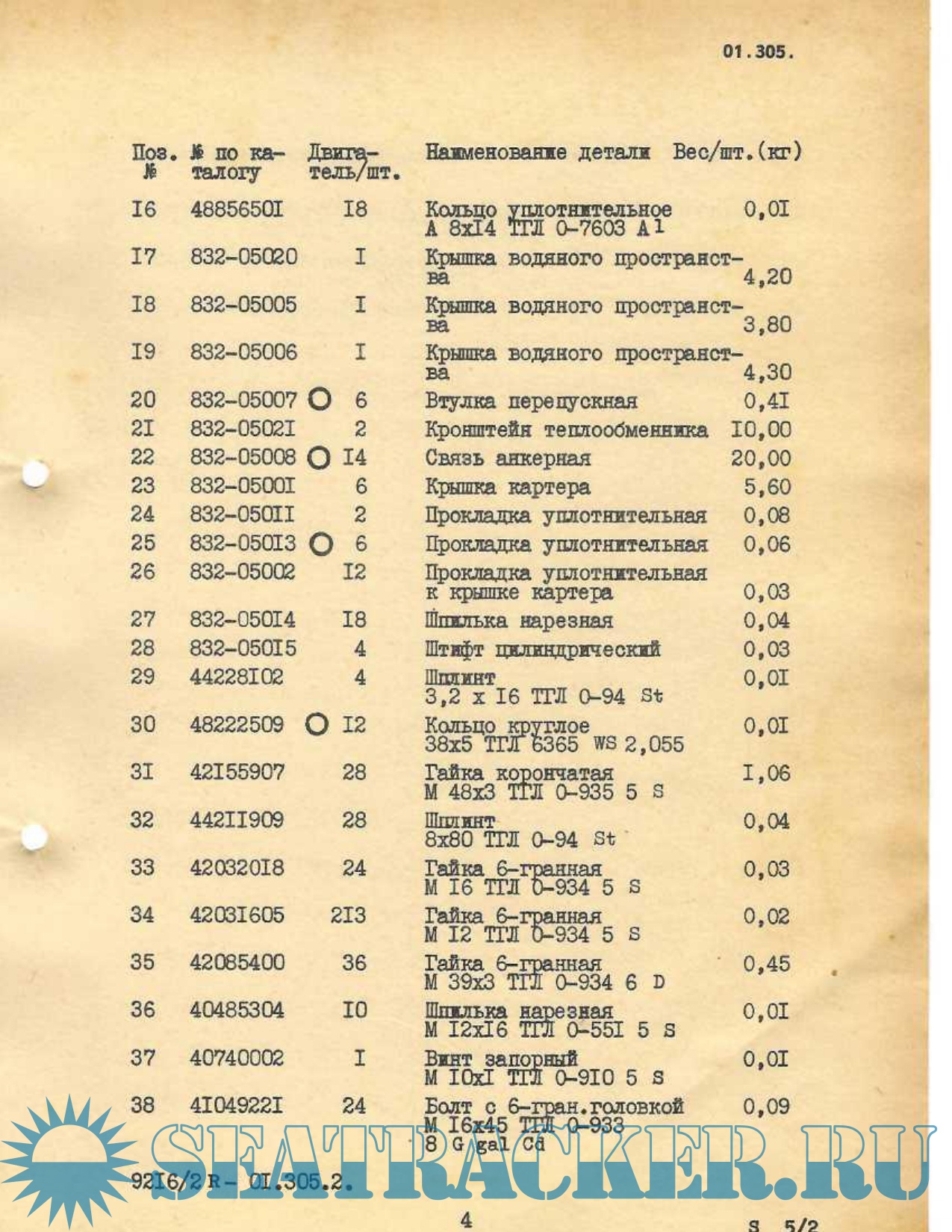 Описание: Список деталей к дизелю 6 NVD 48-2 c указанием их массы.
