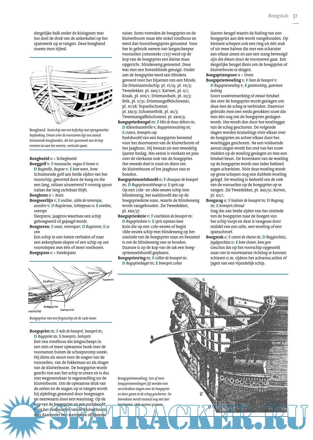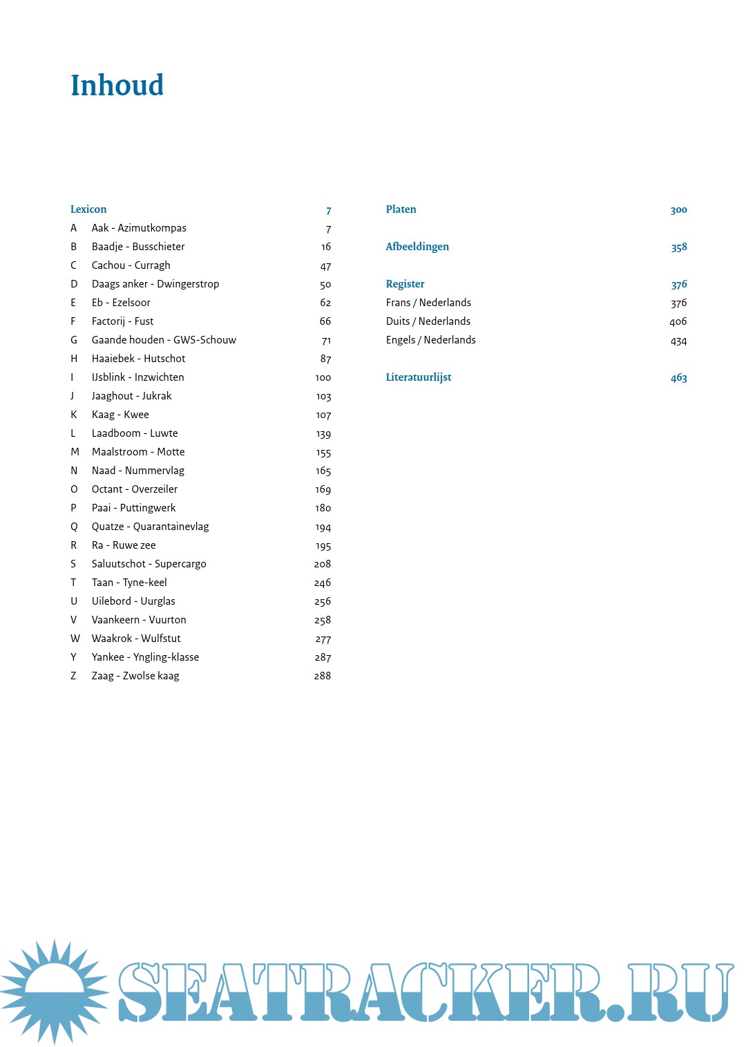 Specialized encyclopedia with approx. 7000 technical terms from shipping in general and sailing in particular. From Aak, Admiral and Anchor cushion to Grootbovenbramlijzeil, Kielhalen, Logboek and Zwolse kaag. Clearly printed in three columns