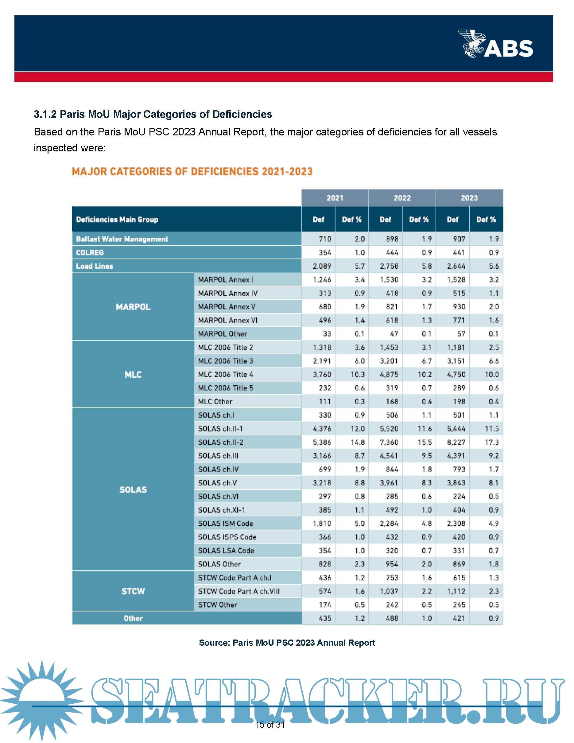 Description: This ABS Annual Report 2023 on Port State Control (PSC) provides information to owners on deficiencies identified on ABS vessels during inspections carried out by the various PSC regimes globally during the 2023 calendar year. This report is being made available to assist owners by providing awareness of potential areas of concern that have been identified on ABS classed vessels.