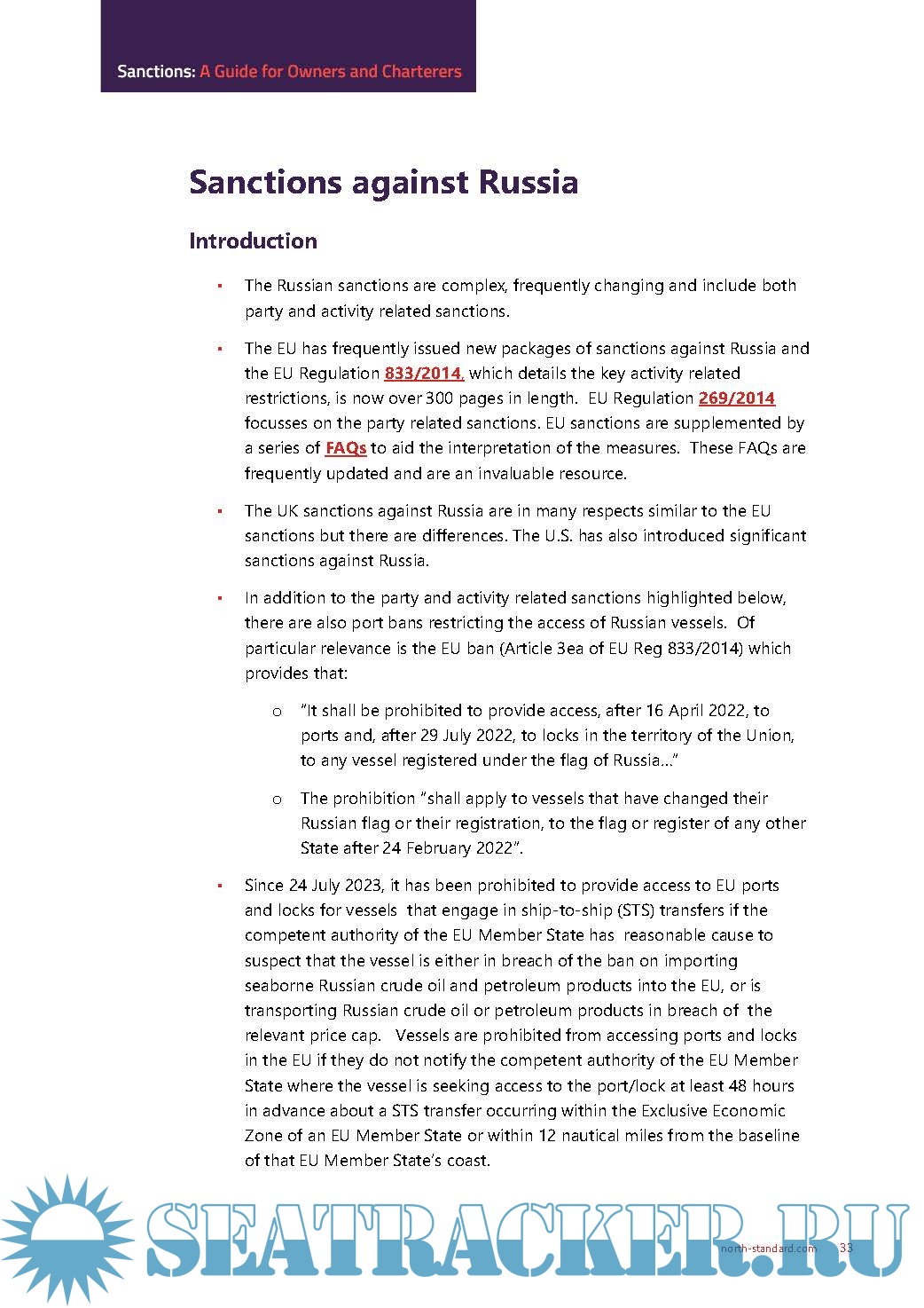 Thirdly, we have included quick reference guides to the sanctions imposed by the EU and U.S
