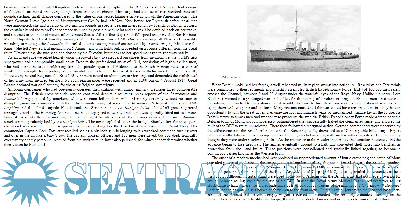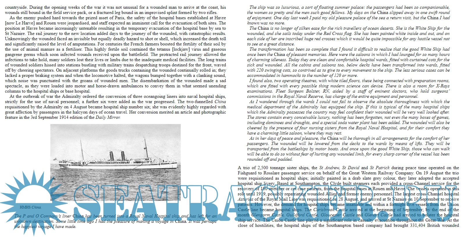 Description: It is often said “The first casualty of war is the truth” and there is no better example of this than the furor caused by the claims and counterclaims of the British and German Governments at the height of the First World War. Wounded allied personnel were invariably repatriated by hospital ships, which ran the gauntlet of mined waters and gambled on the humanity of the U- Boat commanders. For, contrary to the terms of the Geneva Convention, on occasions Germany had sunk the unarmed hospital ships under the pretense they carried reinforcement troops and ammunition. The press seized on these examples of ‘Hun Barbarity’, especially the drowning of noncombatant female nurses.