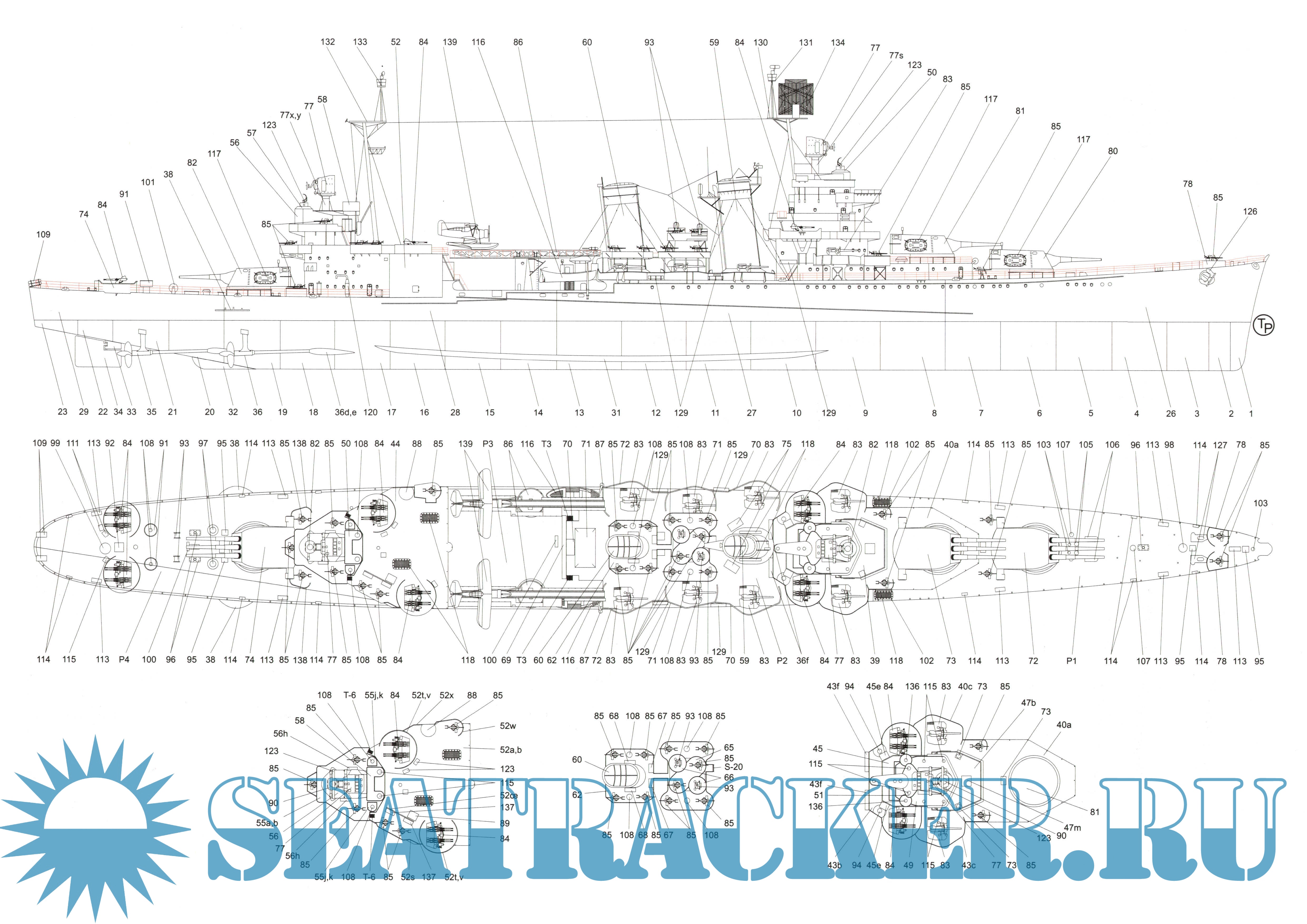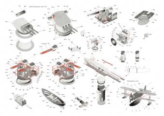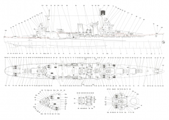 25 листов цветных выкроек и инструкций для изготовления бумажной модели линкора США USS San Francisco в масштабе 1:200Скриншоты