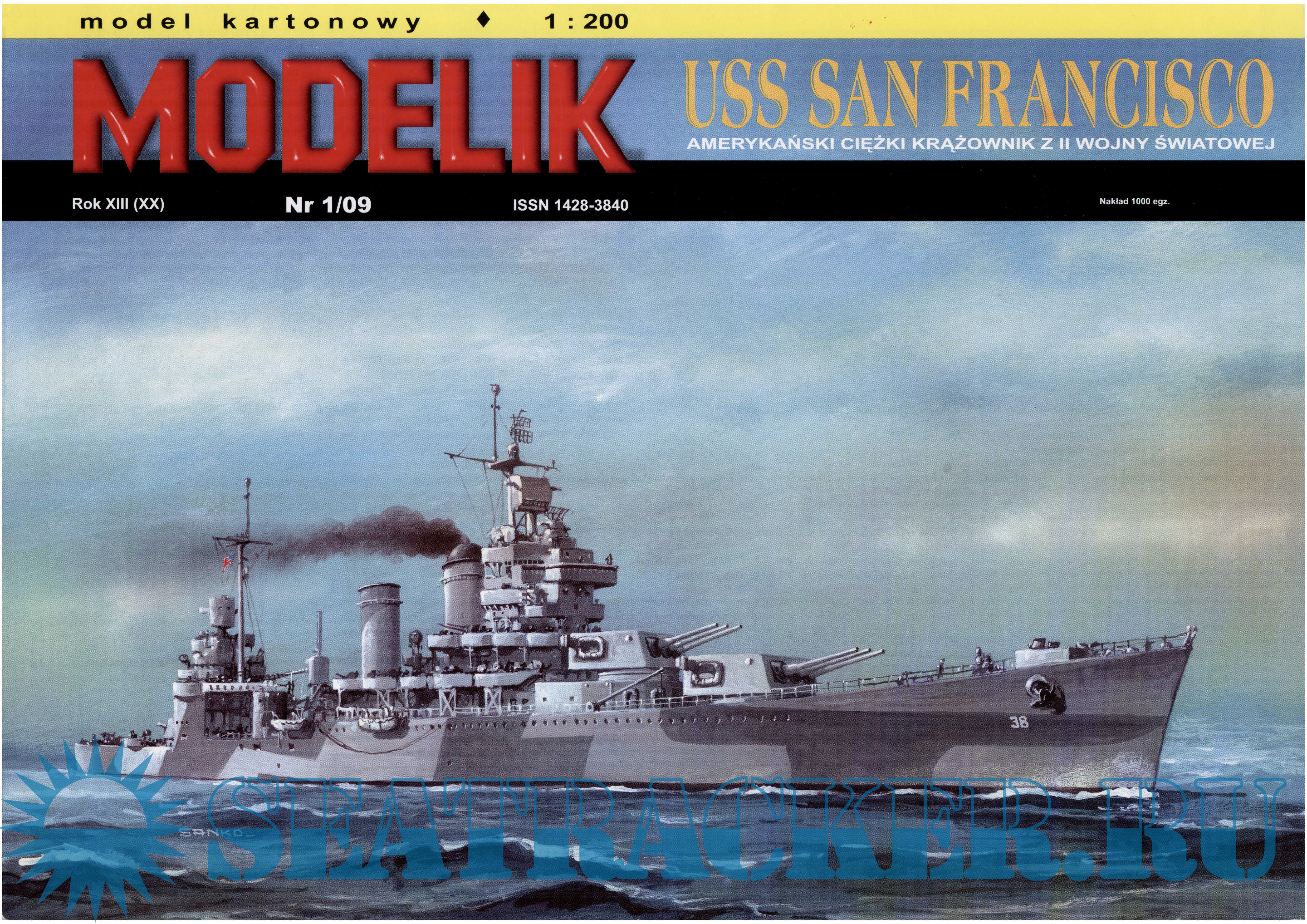 Описание: 25 листов цветных выкроек и инструкций для изготовления бумажной модели линкора США USS San Francisco в масштабе 1:200
