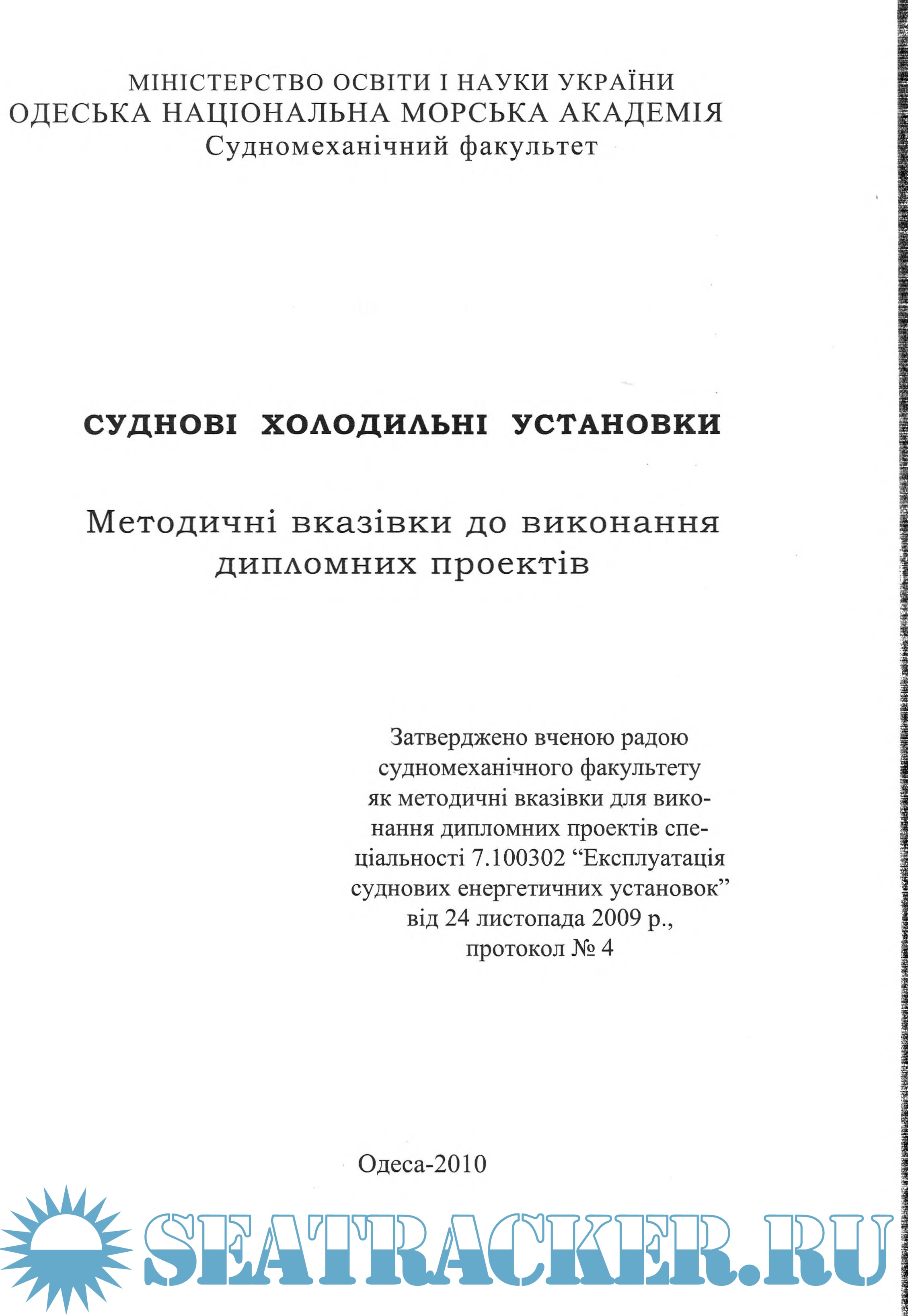 Суднові холодильні установки. Методичні вказівки до виконання Дипломних проектів.