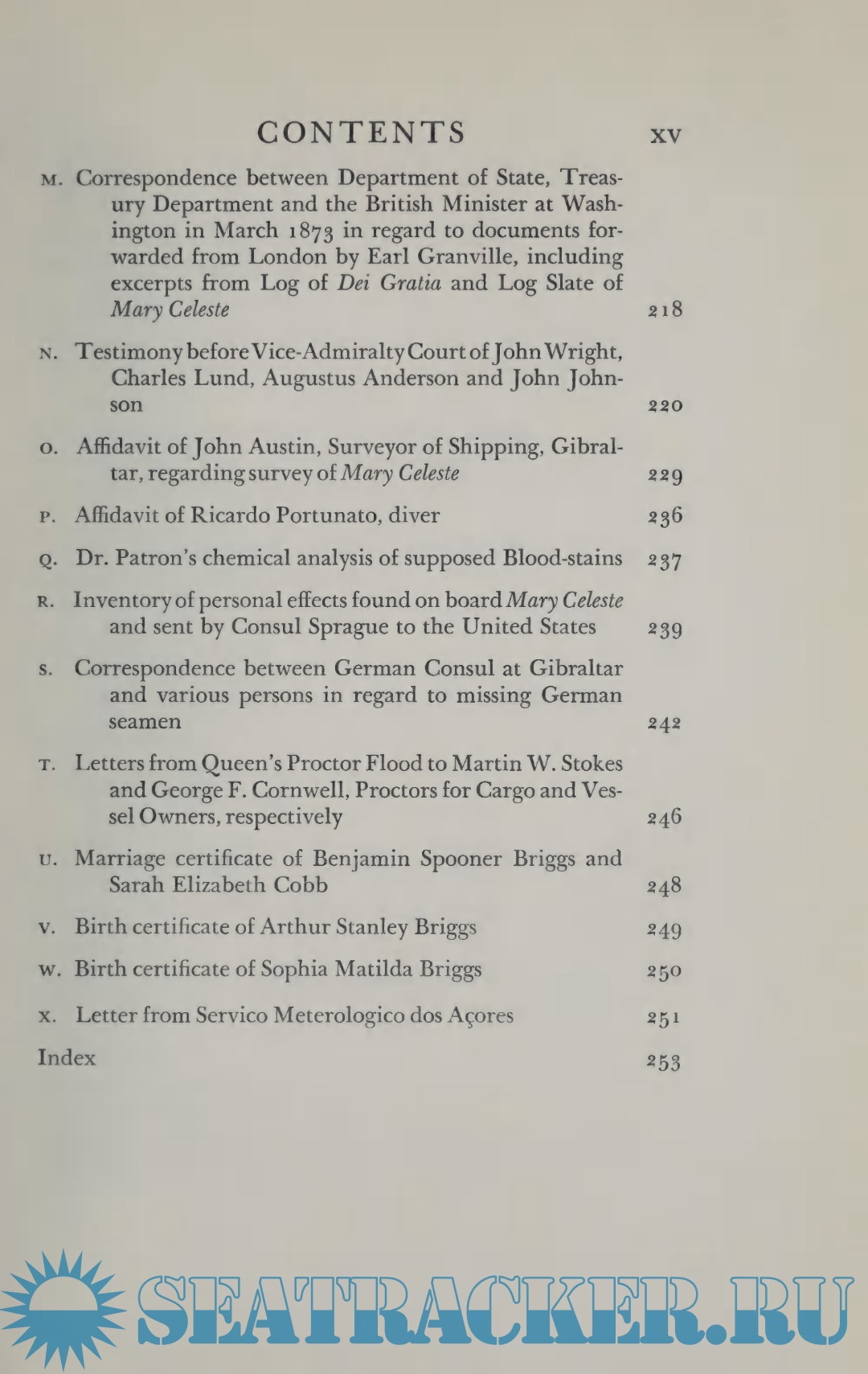 Year: 1942 Language: English Author: Fay C.E. Publisher: Peabody Museum Format: PDF Quality: eBook Pages count: 324 Description: For almost threescore years and ten, the story of the Mary Celeste—a small, seaworthy, American half-brig found wandering, ghostlike, without master or crew, over the waters between the Azores and the coast of Portugal—has continued to allure the interest of people all over the world, and to excite seemingly endless speculation on the part of “those who go down to the sea in ships.”