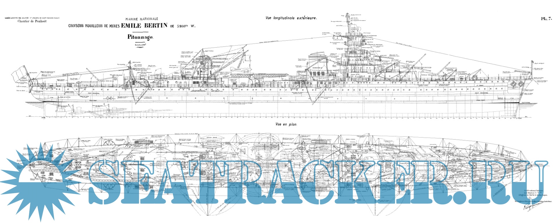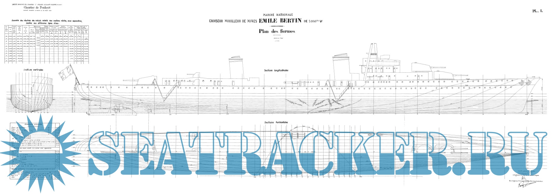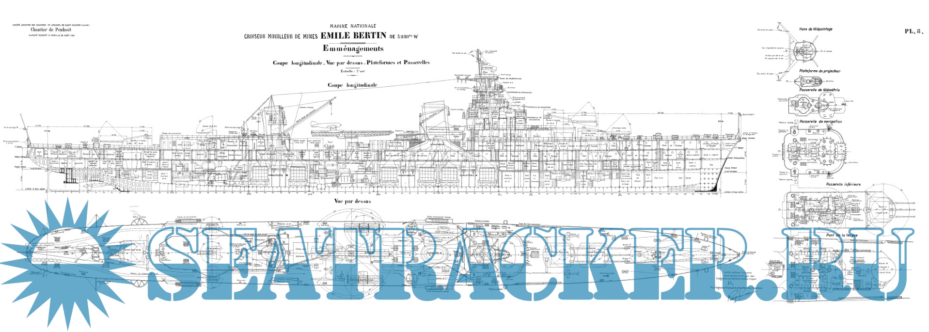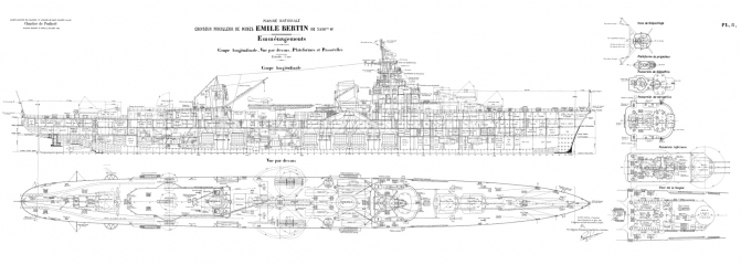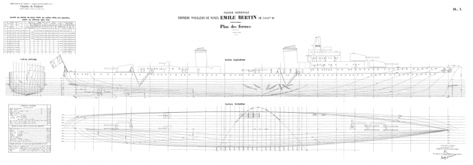 Архивные чертежи французского крейсера "EMILE BERTIN" 1933 год