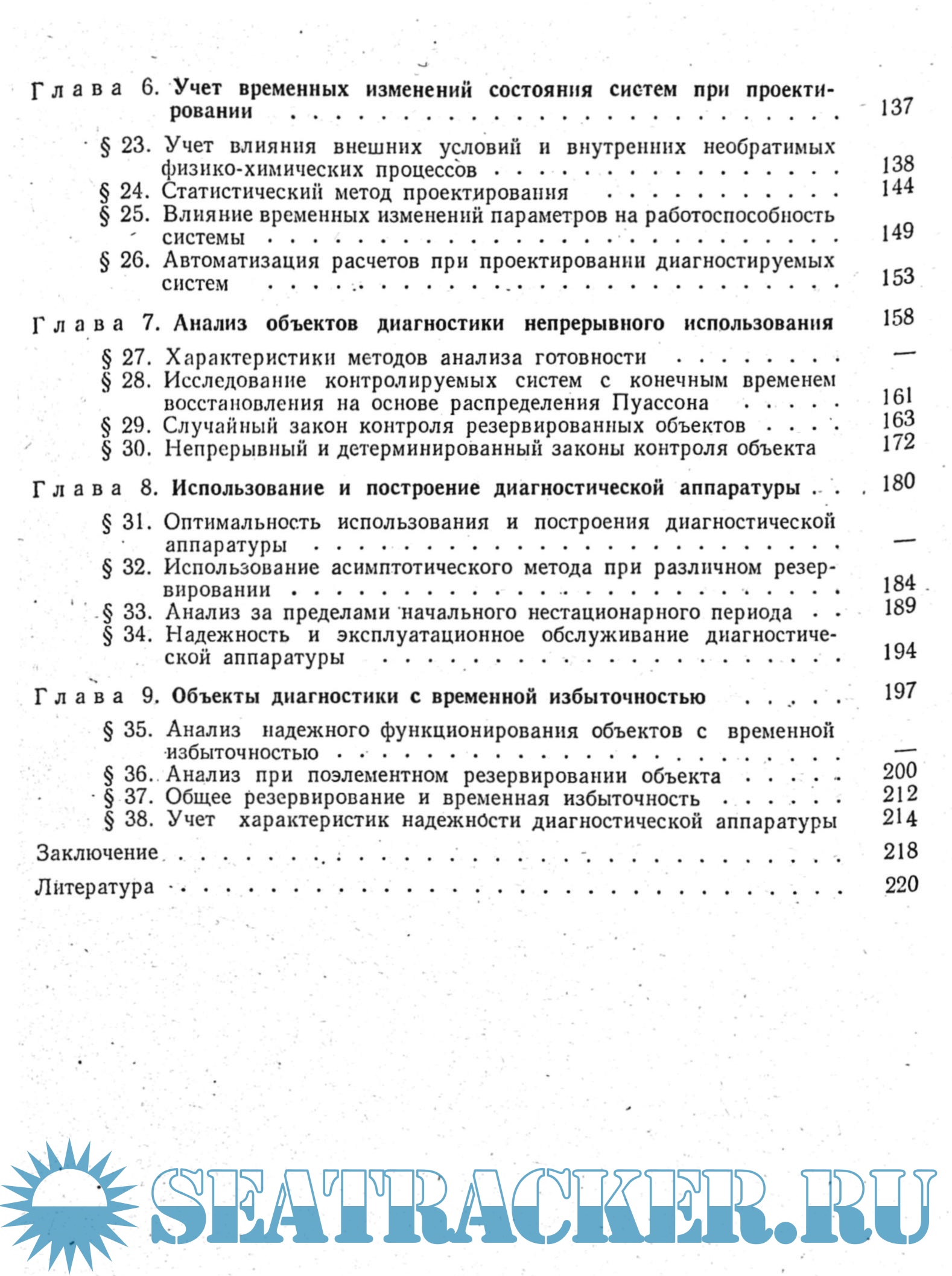 Доп. информация: Трудность решения вопросов, связанных с проектированием судовых технических систем, приспособленных к выполнению диагностических операций, объясняется недостаточной разработанностью и отсутствием публикаций по теоретическим основам технической диагностики. Лучше всего разработаны вопросы, связанные с построением диагностических тестов при наличии статистических данных или функциональной модели системы (С. В. Яблонский, Л. С. Тимонен, П. П. Пархоменко, В. И. Перов, Л.'А. Пчелинцев, Е. С. Согомонян и др.), а также вопросы, связанные с диагностикой оборудования самолетов (И. М. Синдеев).