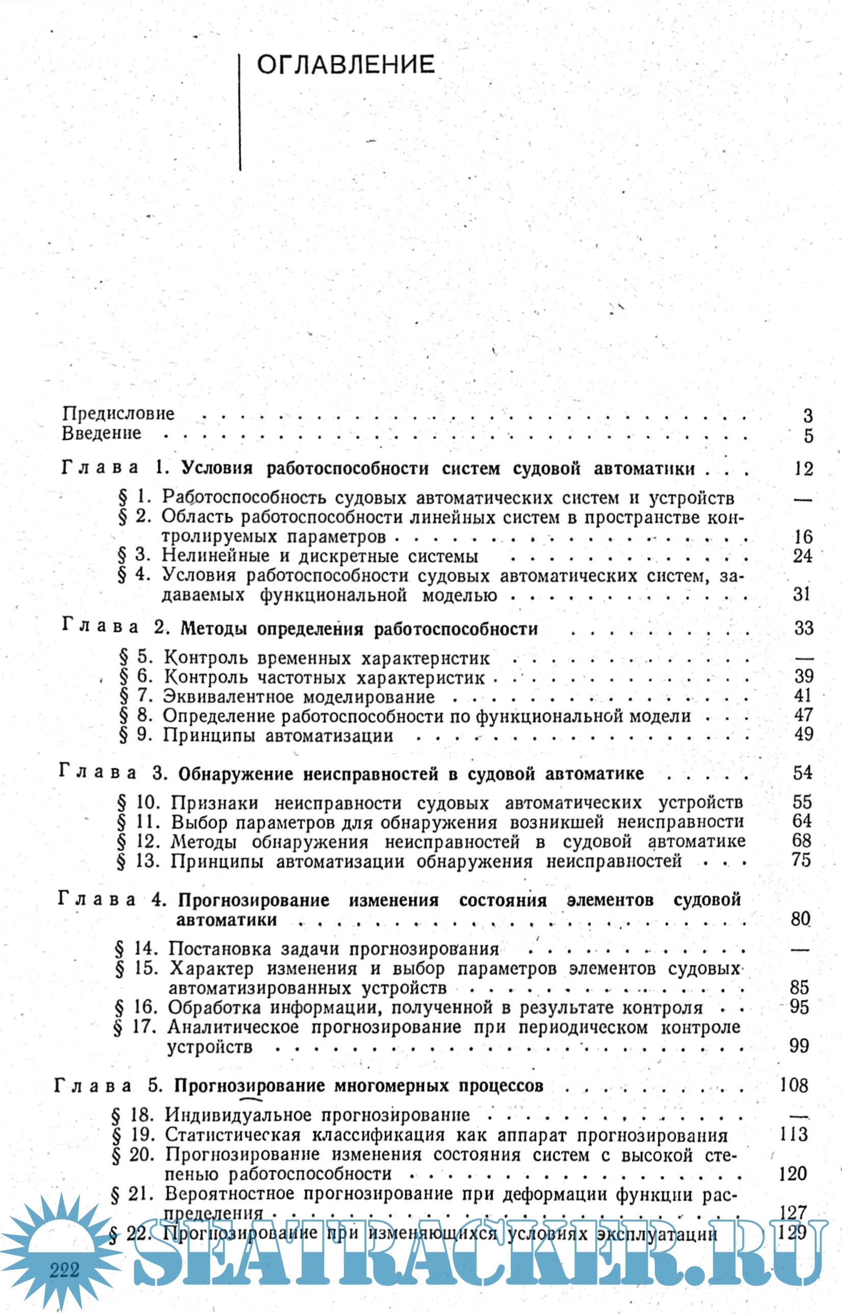 Книга предназначена для инженеров, занимающихся проектированием судовых автоматических систем, сотрудников научно-исследовательских институтов и проектных бюро, связанных с решением задач технической диагностики. Книга может быть полезна и аспирантам высших технических учебных заведений.