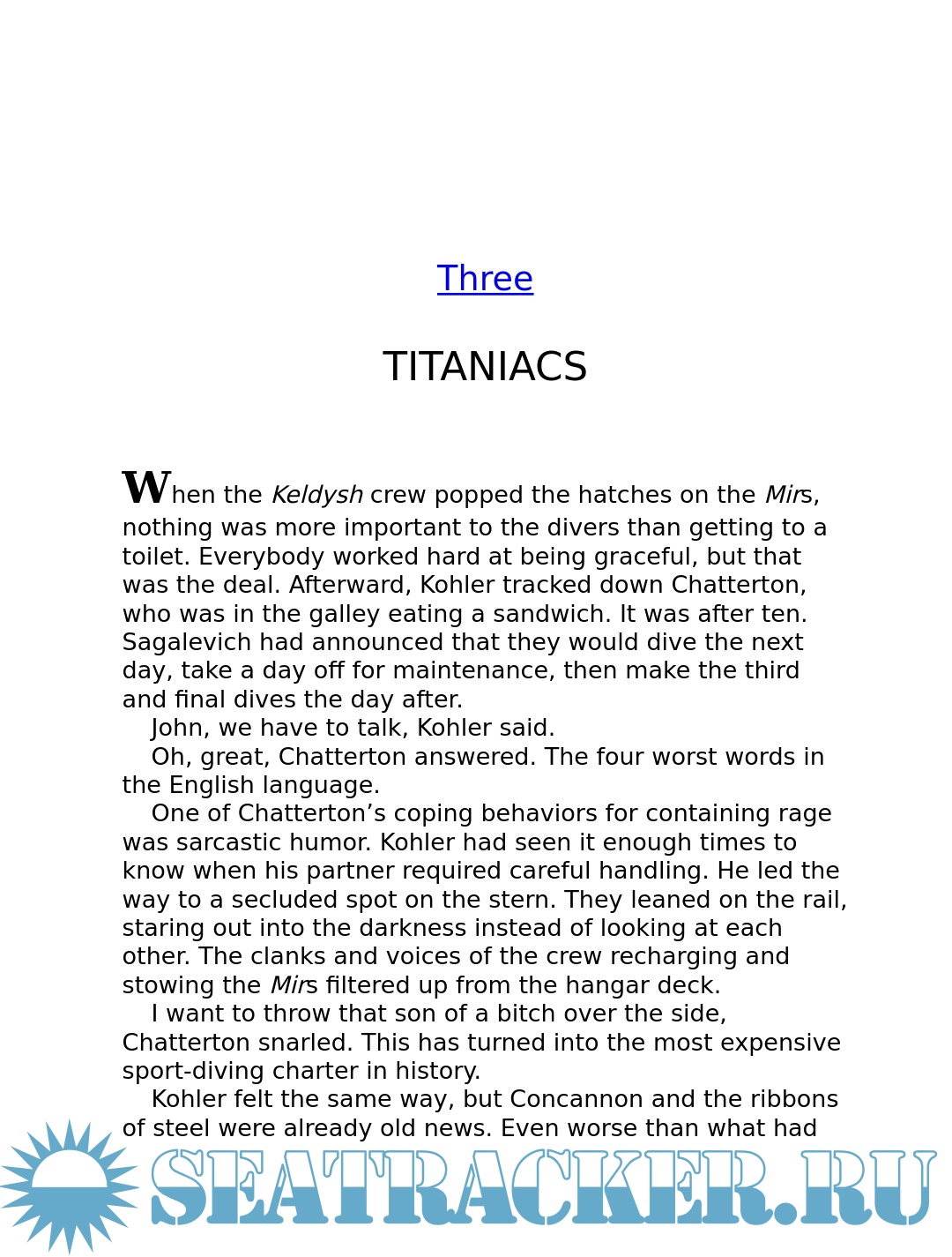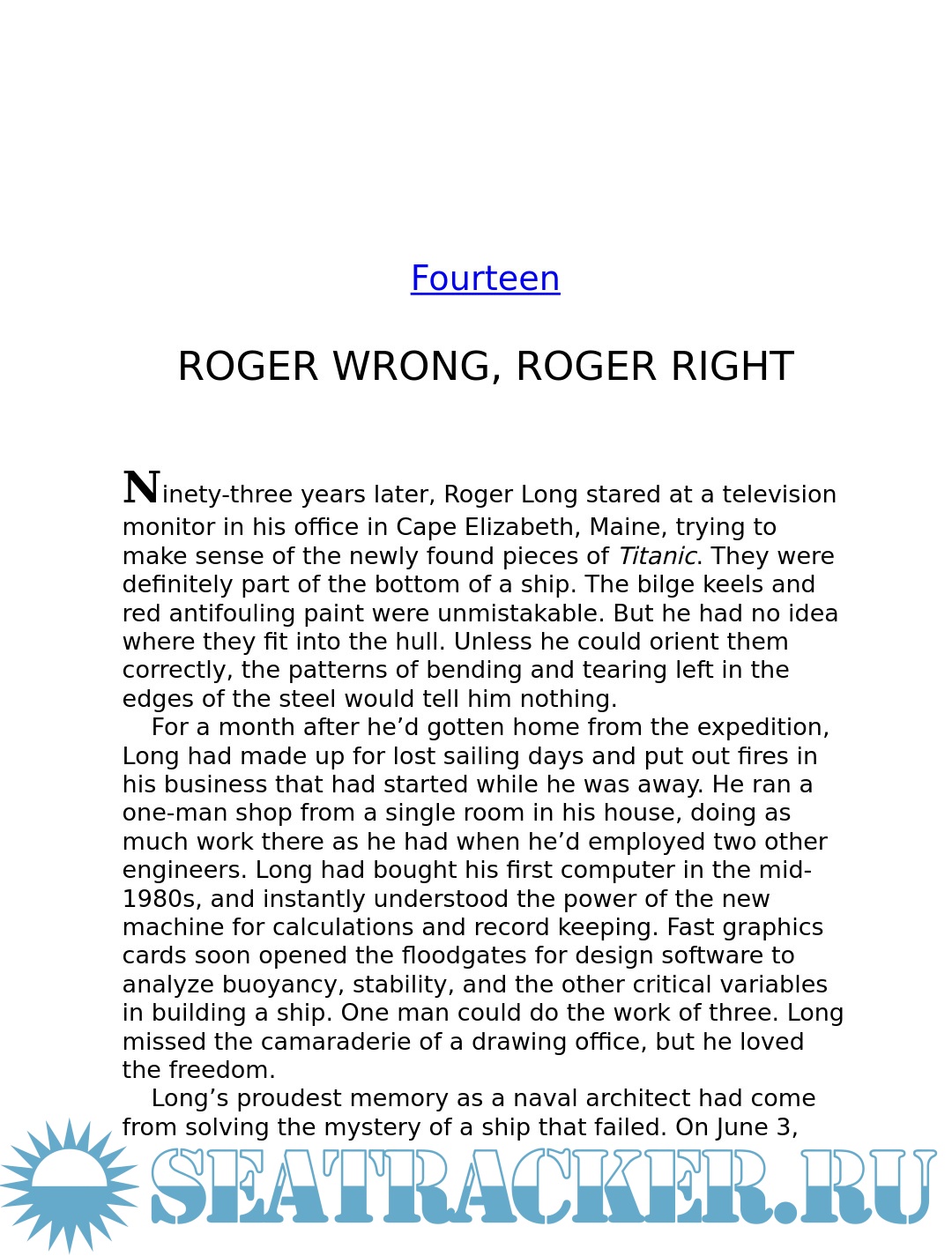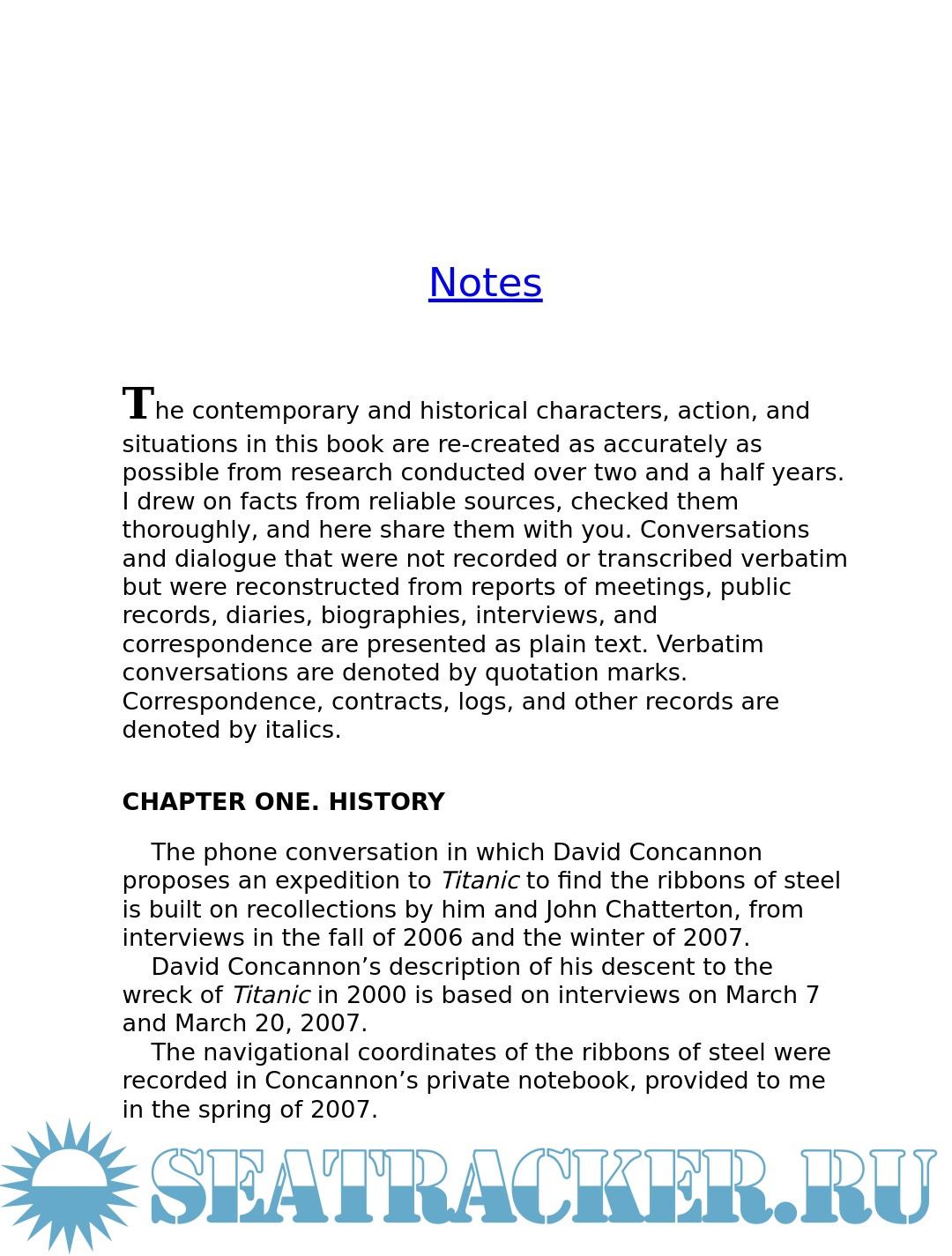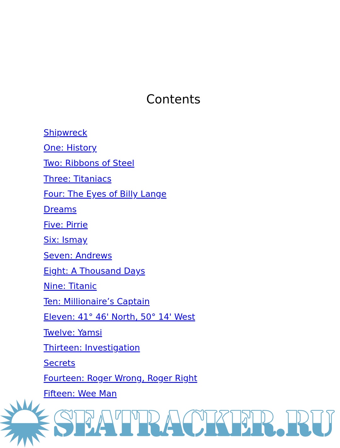 Year: 2008 Language: English Author: Matsen B. Genre: History Publisher: Twelve ISBN: 978-0-446-54339-2 Format: PDF, EPUB Quality: eBook Pages count: 293 Description: After rewriting history with their discovery of a Nazi U-boat off the coast of New Jersey, legendary divers John Chatterton and Richie Kohler decided to investigate the great enduring mystery of history's most notorious shipwreck: Why did Titanic sink as quickly as it did? To answer the question, Chatterton and Kohler assemble a team of experts to explore Titanic, study its engineering, and dive to the wreck of its sister ship, Brittanic, where Titanic's last secrets may be revealed. Titanic's Last Secrets is a rollercoaster ride through the shipbuilding history, the transatlantic luxury liner business, and shipwreck forensics. Chatterton and Kohler weave their way through a labyrinth of clues to discover that Titanic was not the strong, heroic ship the world thought she was and that the men who built her covered up her flaws when disaster struck. If Titanic had remained afloat for just two hours longer than she did, more than two thousand people would have lived instead of died, and the myth of the great ship would be one of rescue instead of tragedy. Additional info: About the Author Bradford Matsen is the author of Descent: The Heroic Discovery of the Abyss as well as many other books about the sea and its inhabitants. He was a creative producer for the television series The Shape of Life, and his articles have appeared in Mother Jones, Audubon, and Nature, among other publications. He divides his time between Seattle and New York City. John Chatterton and Richie Kohler contributed to the research of Titanic's Last Secrets, as they did for Robert Kurson's Shadow Divers, the 2005 Book Sense Nonfiction Book of the Year.