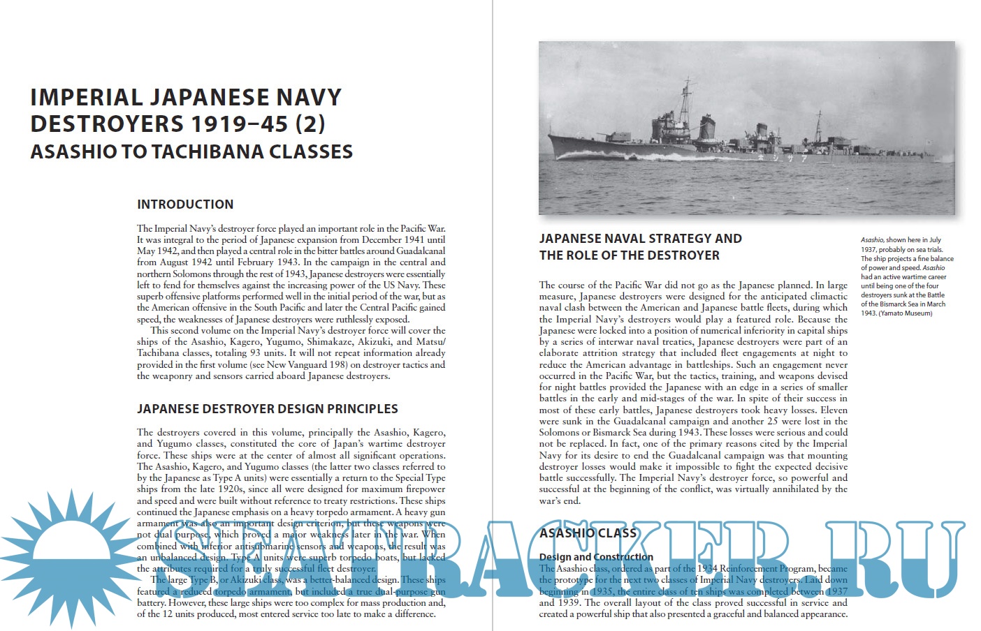 Year: 2013 Language: English Author: Mark Stille Genre: Historical Publisher: Osprey Publishing Edition: New Vanguard 202 Format: PDF Quality: eBook Pages count: 50 Description: During the Pacific War the most successful component of the Imperial Japanese Fleet was its destroyer force. These ships were larger and, in most cases, better-equipped than their Allied counterparts. Armed with a powerful, long-ranged torpedo, these ships proved formidable opponents. Initially, they were instrumental in an unbroken string of Japanese victories, but it was not until the Guadalcanal campaign that these ships fully demonstrated their power. In a series of daring night actions, they devastated Allied task forces with their deadly torpedoes. This volume details the history, weapons and tactics of the Japanese destroyers built just before and throughout the war, including the famous Kagero and Yugumo classes, the experimental destroyer Shimakaze that boasted a top speed of almost 40 knots and 15 torpedo tubes, and the Matsu class that represented the Japanese equivalent to an Allied destroyer escort. These ships were designed to be built quickly and cheaply, but proved to be very tough in combat.