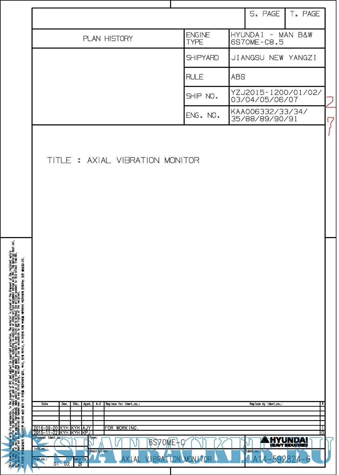 Description: Final drawings for Main Engine Hundai MAN B&W 6S70ME-C8.5.