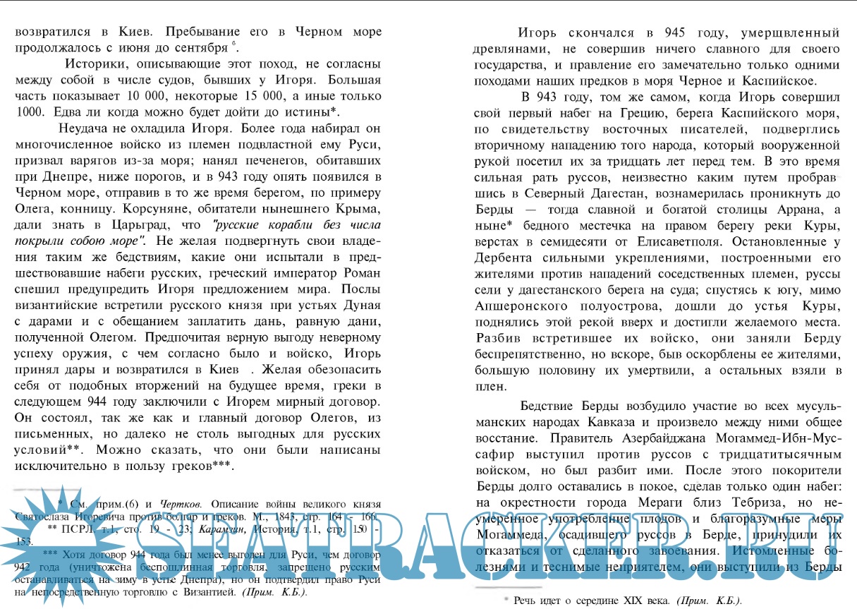 Описание: Важнейшим достоинством книги Висковатова является то, что автор широко использовал доступные ему русские и иностранные первоисточники. Среди русских источников первое место по обилию и ценности материала занимают летописи. Автор имел возможность воспользоваться вышедшими к моменту окончания работы первыми шестью томами “Полного собрания русских летописей”, издававшихся Археографической комиссией: Лаврентьевским, Ипатьевским, Новгородскими, Псковскими и Софийскими летописными сводами. Кроме того, он использовал также в изданиях конца XVIII века и начала XIX века Никоновскую летопись, Архангелогородскую и Двинскую. Очень полно в работе представлены византийские источники, в большинстве случаев не переведенные на русский язык: Георгий Амартол, Зонара, Симеон Логофет, Кедрин и др. С восточными источниками, содержащими сведения о руссах, автор ознакомился по работам выдающегося ориенталиста Френа. Использование этих источников дало возможность автору впервые раскрыть не известные ранее страницы русской истории.