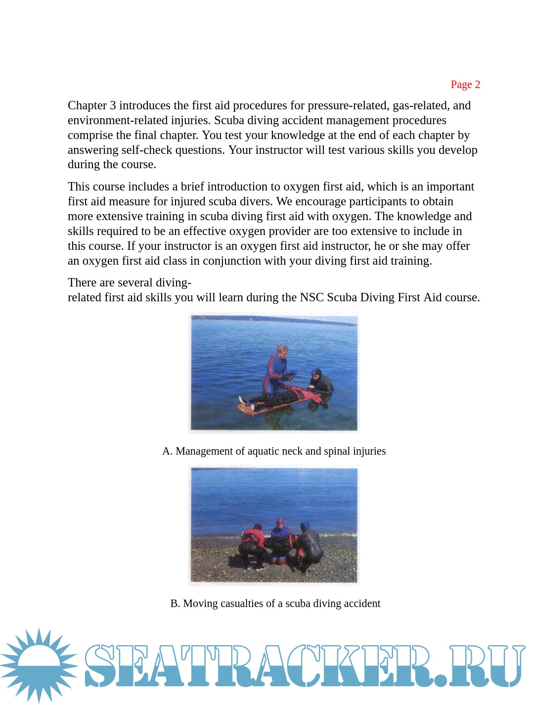 · Demonstrate the techniques for handling, moving, and positioning people who simulate injured scuba divers, including those with suspected neck injuries