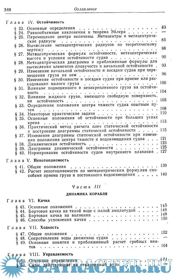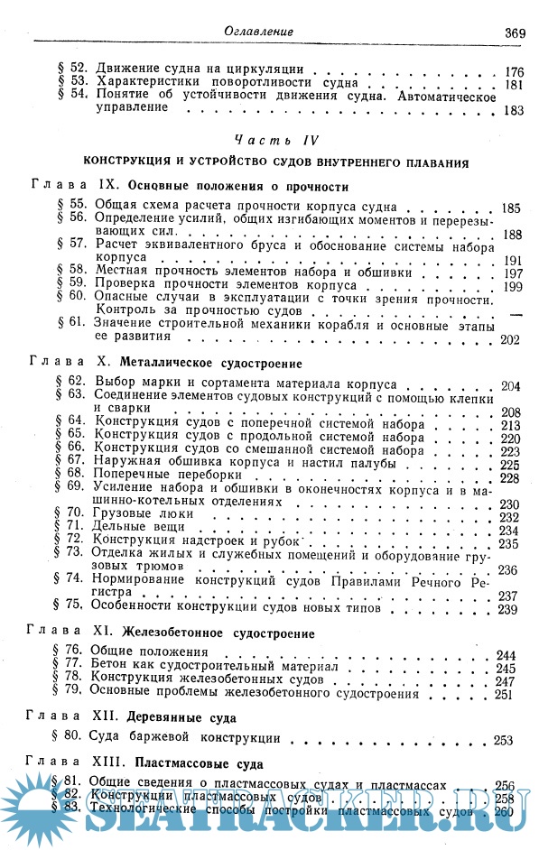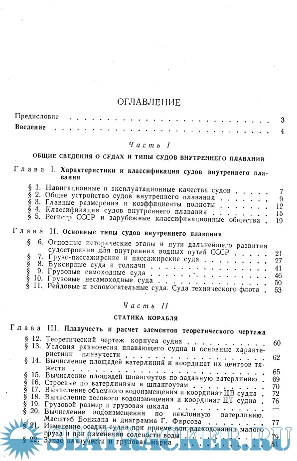 В ней даны общие сведения о навигационных, эксплуатационных и экономических качествах судов внутреннего плавания и приведены характеристики их основных типов; изложены основы статики и краткие сведения по динамике корабля, а также основные понятия о прочности судна.