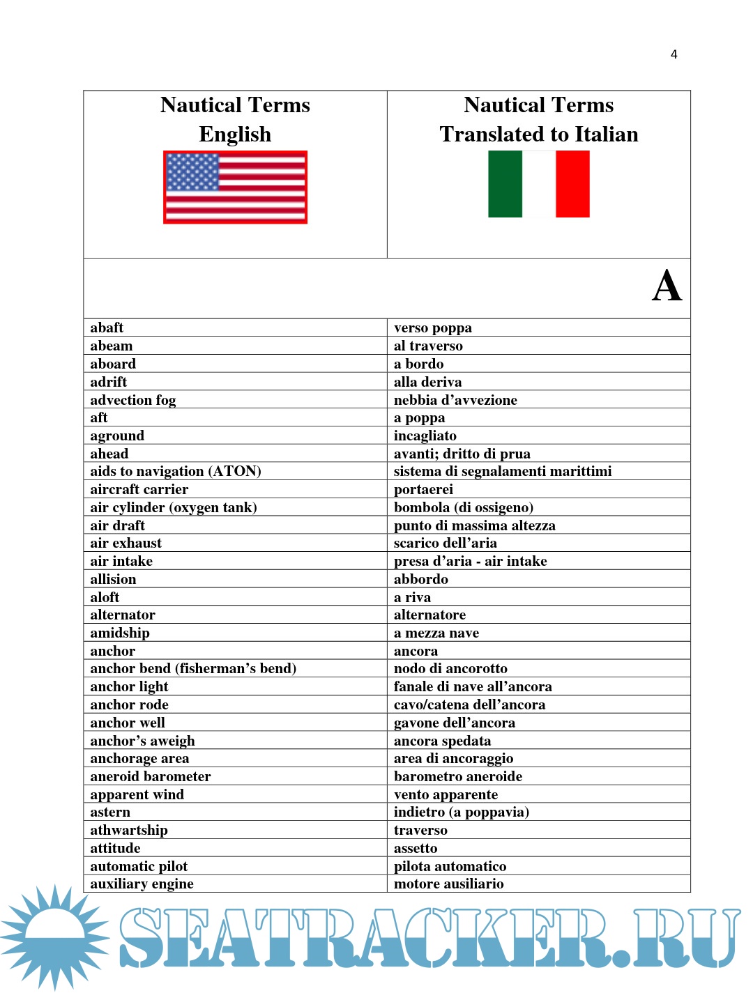 Glossary of Nautical Terms (EN – IT, IT – EN)