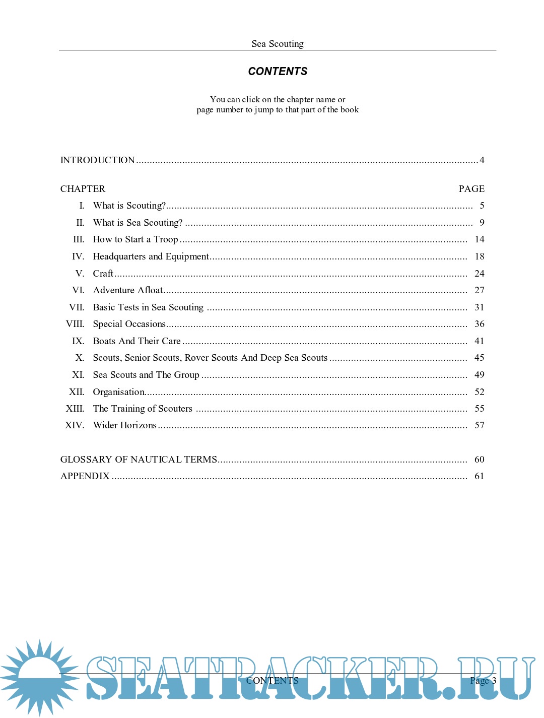 Description: This manual covers Sea Scouting history, seamanship, swimming and lifesaving skills, knots, tackles, ship gear and sailing techniques.
