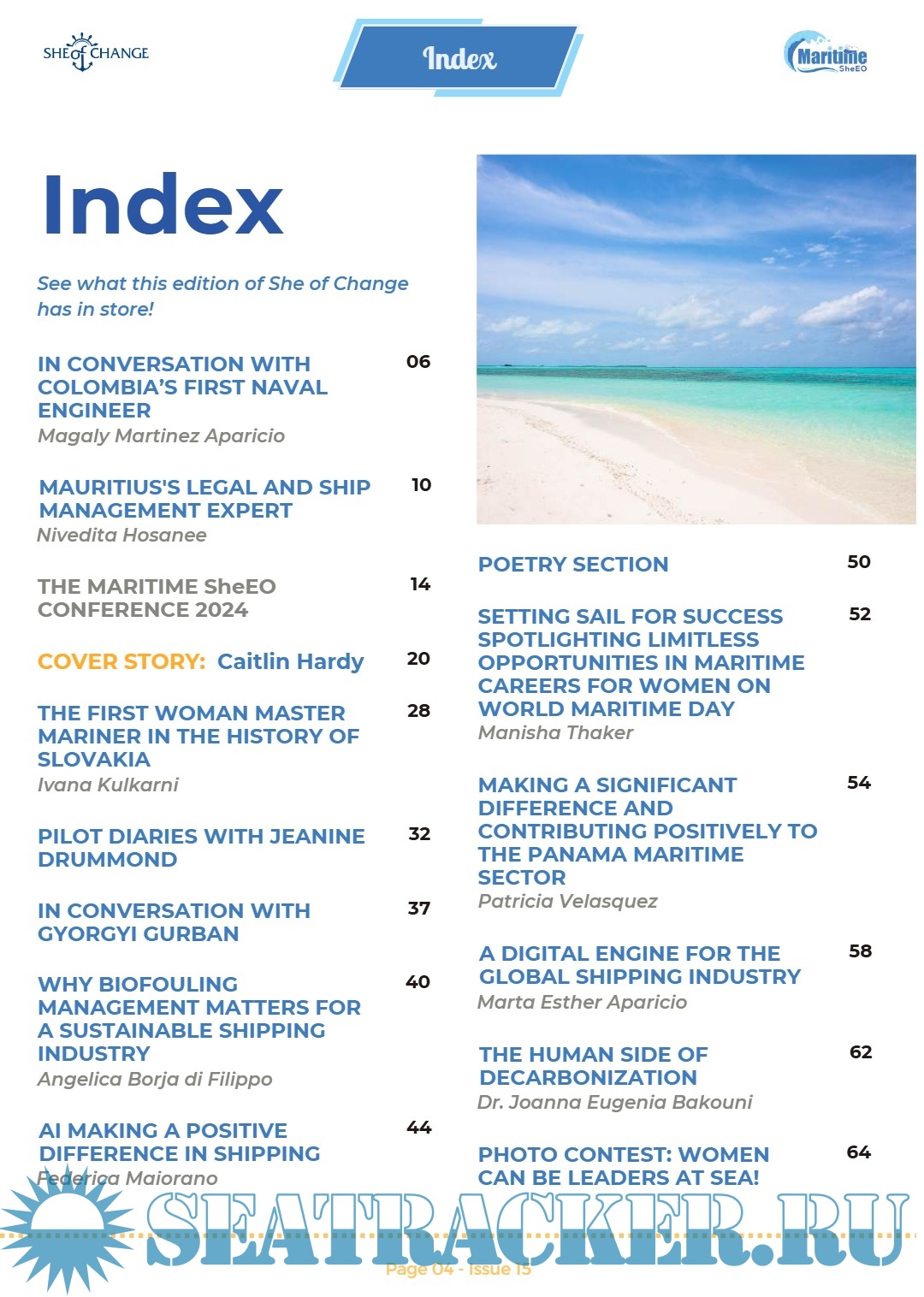 Year: 2024 Language: English Author: Maritime SheEO Genre: Periodical (Magazine) Edition: Issue 15 | September Format: PDF Quality: eBook Pages count: 68 Description: This edition of the magazine released on 26th September in commemoration of World Maritime Day. The cover page portrays Caitlin Hardy, the MD and founder of Ness Sea, a consulting business that connects the technology and maritime industries. In the interview with Caitlin she talks about her incredible growth and journey within the maritime industry. Also included in this issue are various write- ups / stories on remarkable, resilient women who work in the shipping industry. These women have persevered in their dedication and expertise, accomplishing remarkable success in their maritime careers, both at sea and on the shore. Curator of the regular column “Pilot Diaries” Jeanine Drummond shares her own motivating and inspirational story of her career in the maritime industry. Unquestionably worth reading. The magazine also covers some very informative articles on carbonization and bio- fouling. In addition, we have included two poems showcasing viewpoints from the poets' imaginations as well as the amazing winning images from the Photo competition that encapsulate the essence of women in leadership roles at sea. Additional info: About the Founder: Maritime SheEO is the brainchild of our founder Sanjam. An advocate for Diversity in the Maritime Industry, she is the “go to” person for gender issues in the Indian maritime industry as well as overseas. Passionate about driving change, she launched Maritime SheEO in August 2019.She has been working in the maritime industry since 2001 and is a Director of Sitara Shipping Ltd.A founder member of Women’s International Shipping and Trading Association (WISTA) India, she is also currently Exco member of WISTA International. She’s a member of the Executive Board of Directors of the World Maritime University based in Malmo, Sweden.