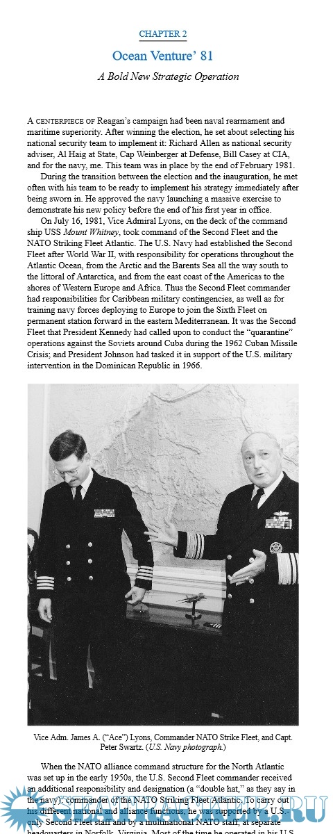 Reagan pushed Congress to build the navy back to its 1945 strength of 600 major ships. He gathered a circle of experienced naval planners, including the author, to devise an aggressive strategy that would move our fleets within spitting distance of Soviet waters. New radars, sensors, and emissions technology would make ghosts of our submarines and surface fleets. We would operate aircraft carriers in Arctic waters, which no navy had attempted. The Soviets, surrounded by our forward naval strategy, bankrupted their economy trying to keep pace. It wasn't long before the Berlin Wall...
