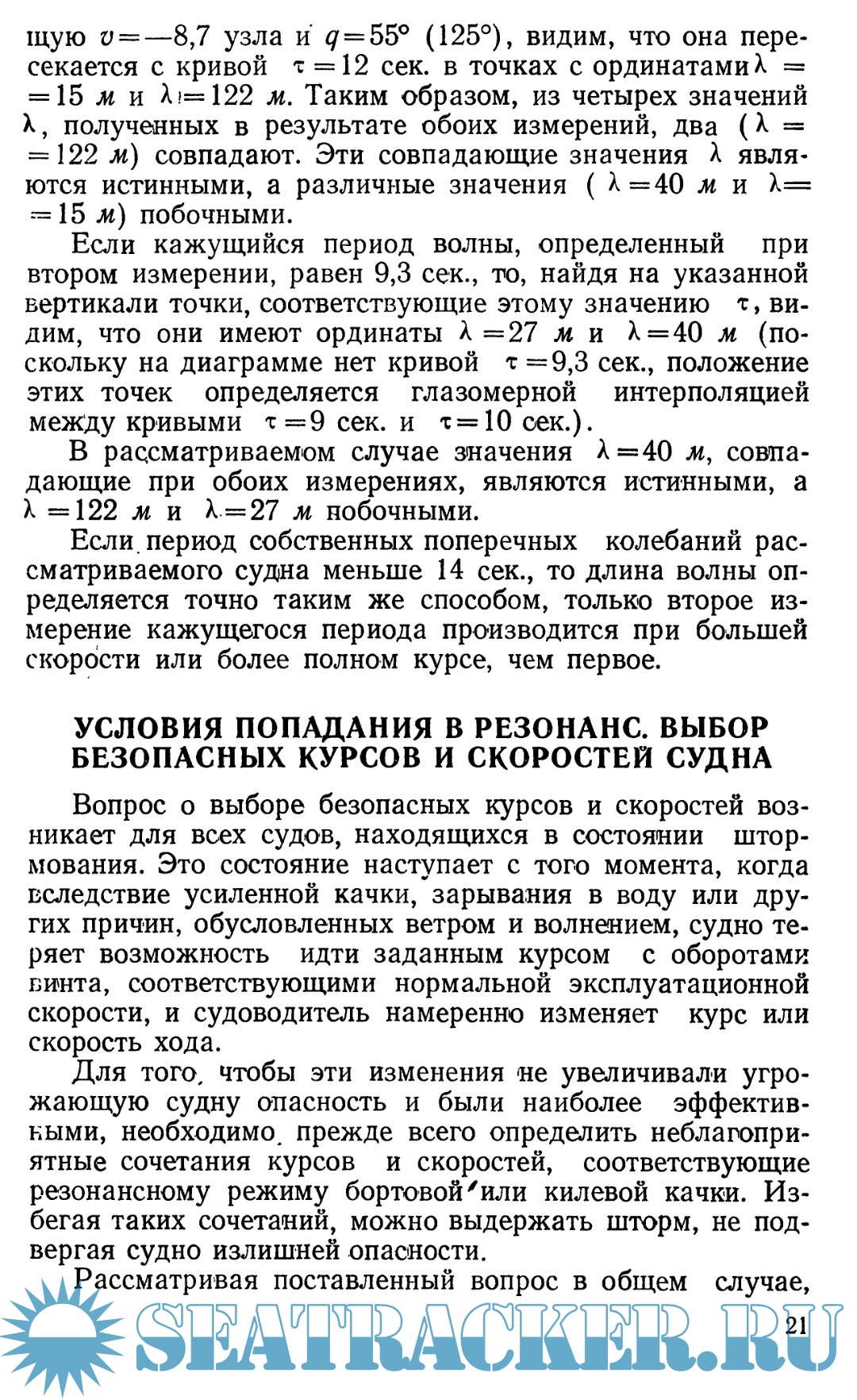 Условия попадания в резонанс. Выбор безопасных курсов и скоростей судна