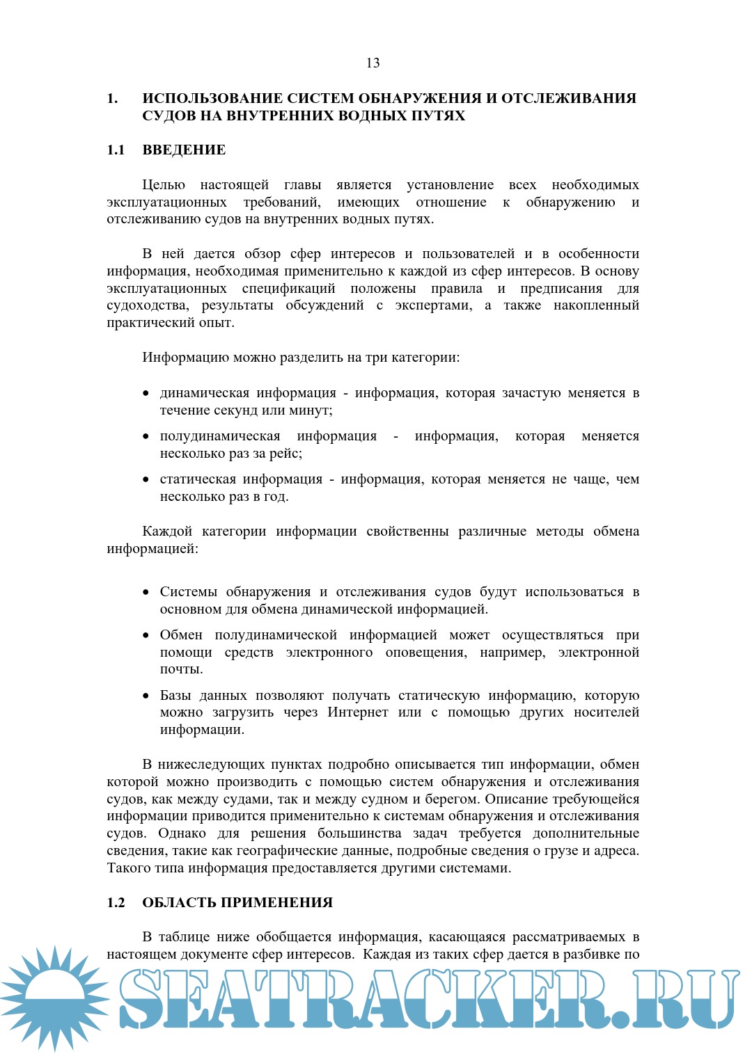 Стандарт для систем обнаружения и отслеживания судов на внутренних водных путях