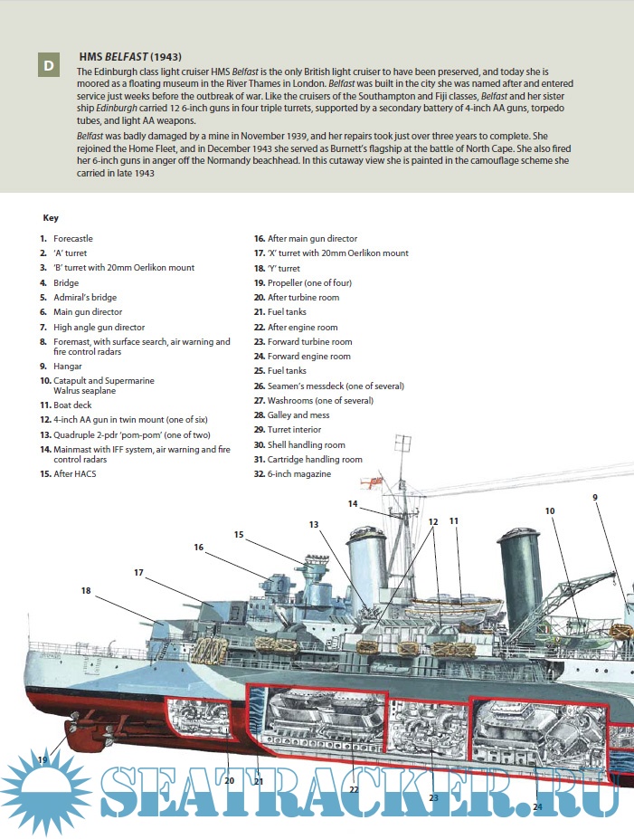 During the 1930's a new group of British light cruisers were commissioned, designed to replace an earlier generation of warships designed during the Great War. These new ships were sleek, fast, and relied on the 6-inch gun - a tried and tested weapon that combined hitting power with a high rate of fire. A second generation of light cruisers followed during the late 1930's, armed with twelve 6-inch guns apiece. One of these - HMS Belfast - is still afloat today.