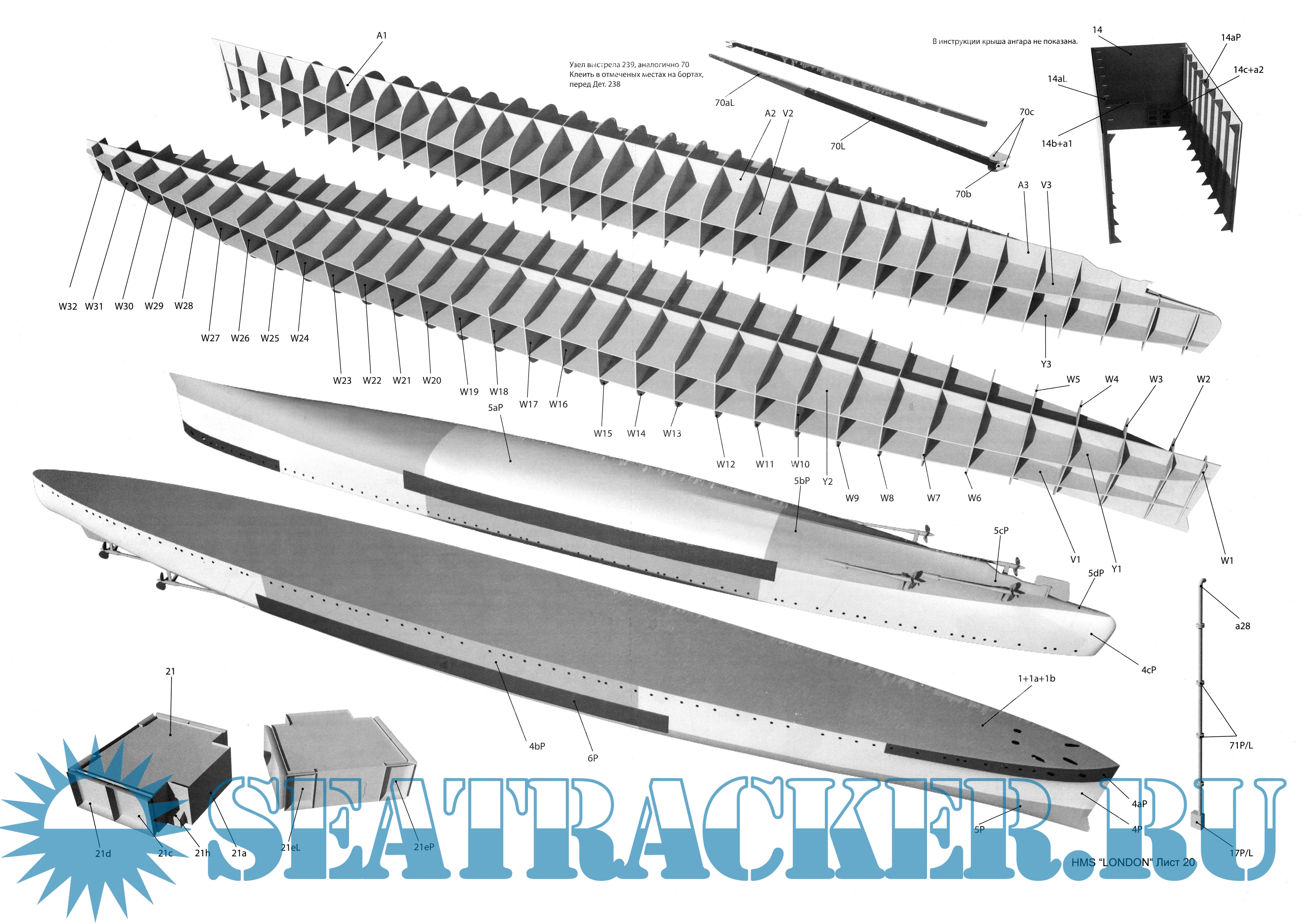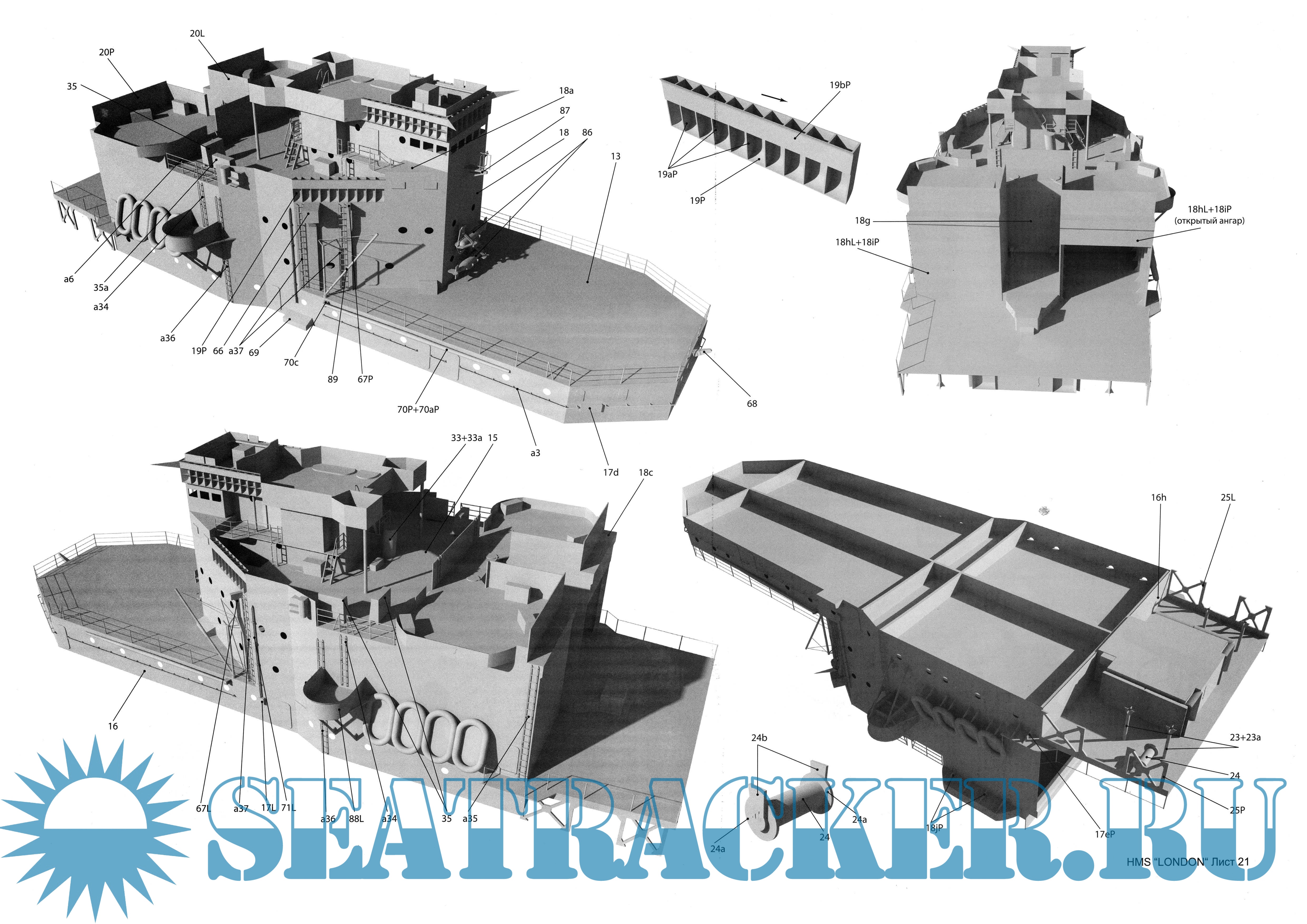 41 лист цветных выкроек и инструкций для изготовления бумажной модели тяжёлого крейсера HMS ''London'' Великобритания в масштабе 1:200