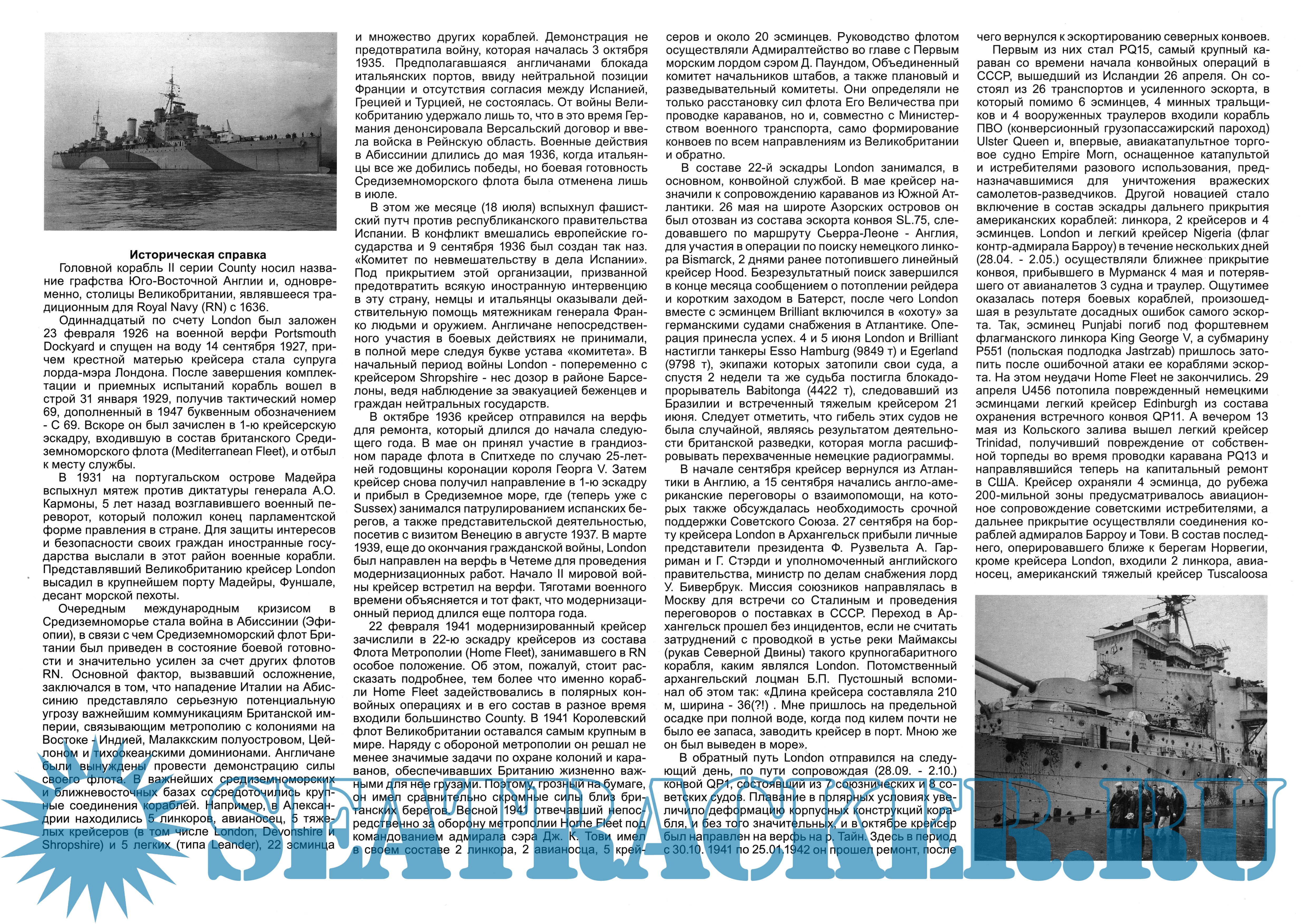 Описание: 41 лист цветных выкроек и инструкций для изготовления бумажной модели тяжёлого крейсера HMS ''London'' Великобритания в масштабе 1:200