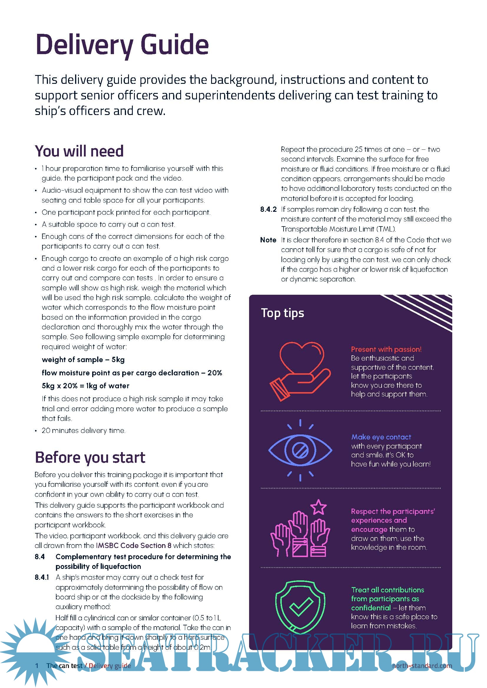 . This delivery guide provides the background, instructions and content to support senior officers and superintendents delivering can test training to ship's officers and crew.