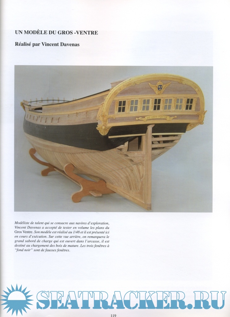 Fortuitously a gabare will participate in the Kerguelen expedition in 1772. She was adequately named Le Gros Ventre. She will eventually be abandoned by Kerguelen and sailing alone under the command of M. de St Allouarn, she will discover the west coast of Australia in March of 1772. The ownership of this land was written in the name of the King, placed in glass bottles and buried at the location of this landing. In 1998, the bottles were unearthed, which provoked great interest for Le Gros Ventre and her commander M. de St Allouarn. This would be a determining factor in the choice of this gabare as a subject since her draughts are preserved in Vincennes at the Service Historique de la Marine.