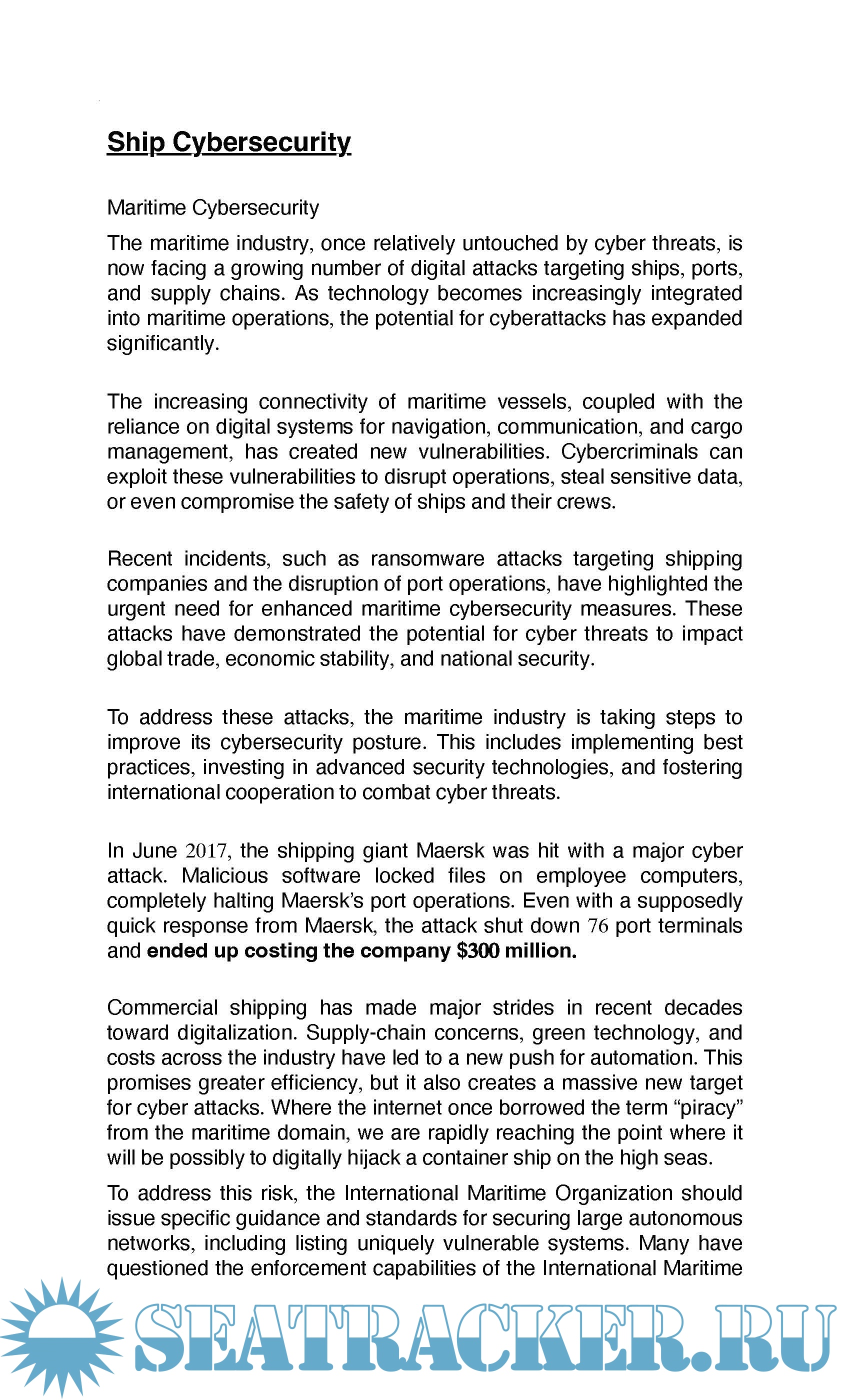 Maritime Cyber Security: Mariners' Briefing on Port and Ship Security