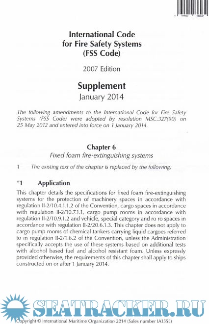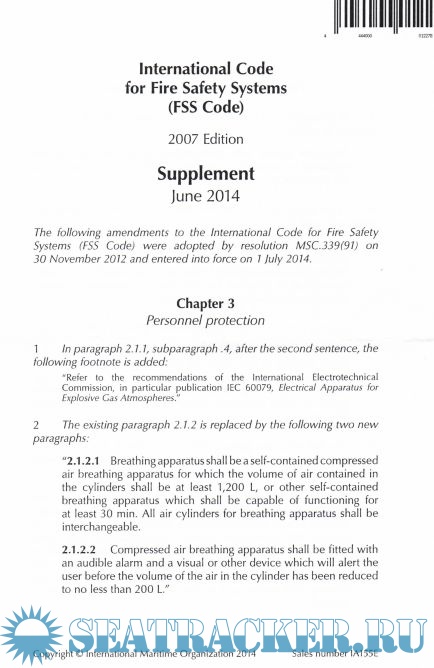 Year: 2014 Language: english Author: IMO Publisher: IMO Edition: Supplement Format: PDF Quality: Scanned pages Pages count: 12+11 Description: Since the publication of FSS Code 2007 Edition, MSC has adopted resolutions amending the FSS Code. The supplement presents amendments which have either entered into force or will have entered into force before the next edition has been published.