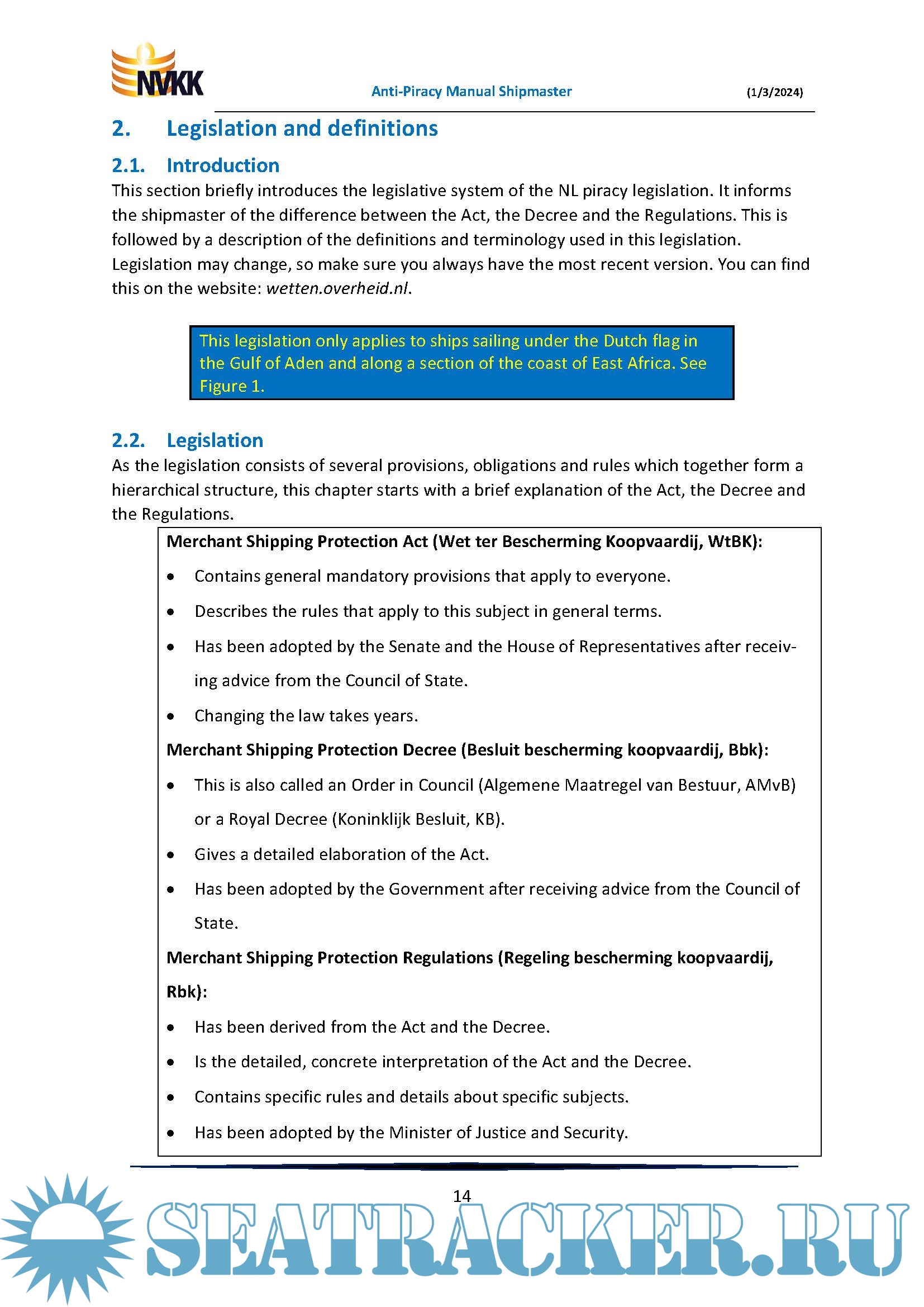 The core of this Manual is formed by a number of uniquely numbered checklists to make sure the shipmaster does not forget anything. Furthermore, a number of important subjects are discussed, such as the use of force, notifications and reports, fines, etc.