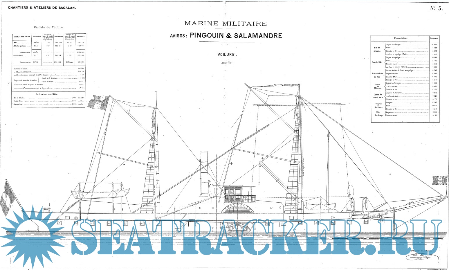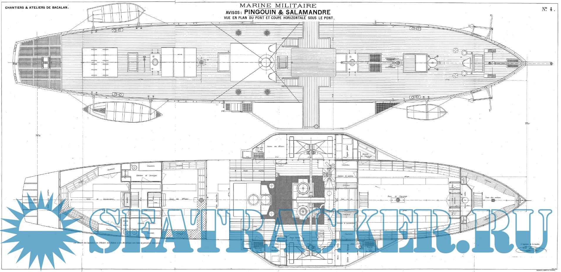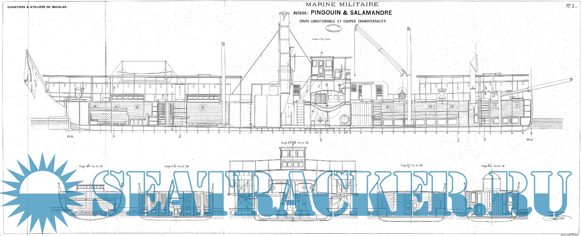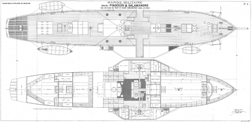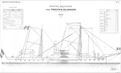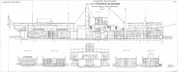 Архивные чертежи колёсных пароходов PINGOUIN и SALAMANDRE 1884 год (Франция)