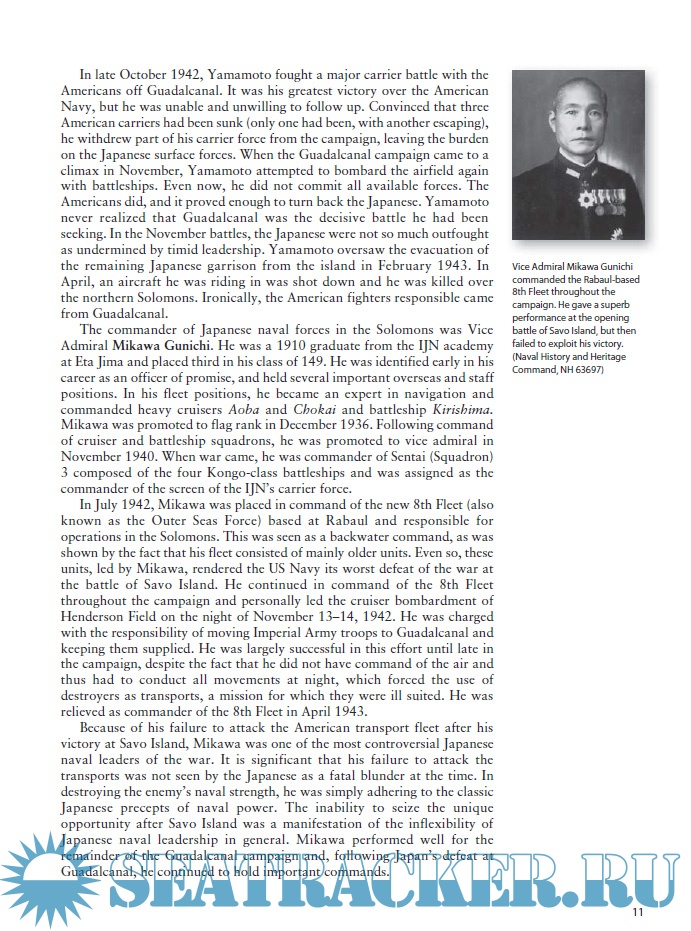 Description: The battle for Guadalcanal that lasted from August 1942 to February 1943 was the first major American counteroffensive against the Japanese in the Pacific, it also marks the high point of Japanese expansion and can justly be claimed as one of the major turning points of the Pacific War. While the troops of the US Marine Corps and later the US Army battled the Japanese occupiers on the densely jungled island of Guadalcanal, the US and Japanese naval forces fought a series of tightly contested battles in the waters nearby. The first of these, the battle of Savo Island on the night of 9 August 1942, saw the Japanese inflict a sever defeat on the Allied force, driving them away from Guadalcanal and leaving the just-landed marines in a perilously exposed position. This was the start of a series of night battles that culminated in the First and Second battles of Guadalcanal, fought on the nights of 13 and 15 November, that were narrowly won by US Naval forces and prevented the Japanese from reinforcing their troops on the island to any great extent, and heralded the turning of the tide in the battle for Guadalcanal. One further major naval action followed, the battle of Tassafaronga on 30 November 1942, when the US Navy once again suffered a severe defeat, but this time it was too late to alter the course of the battle as the Japanese evacuated Guadalcanal in early February 1943.This title will detail the contrasting fortunes experienced by both sides over the intense course of naval battles around the island throughout the second half of 1942 that did so much to turn the tide in the Pacific.